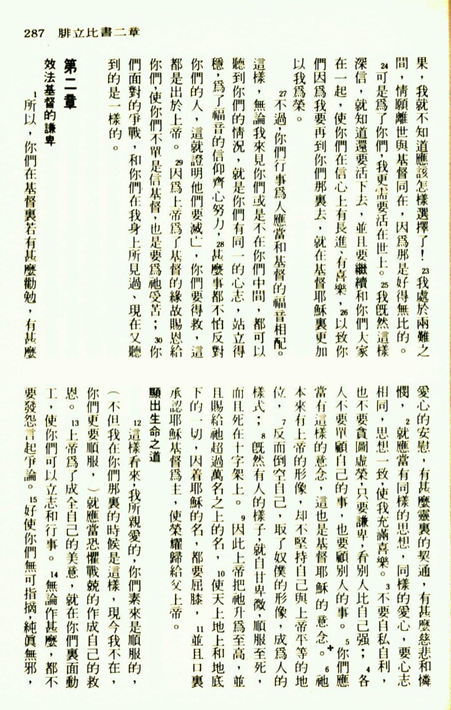 1976年聖經新譯本新約 腓立比書 1 章 22 節到 2 章 15 節