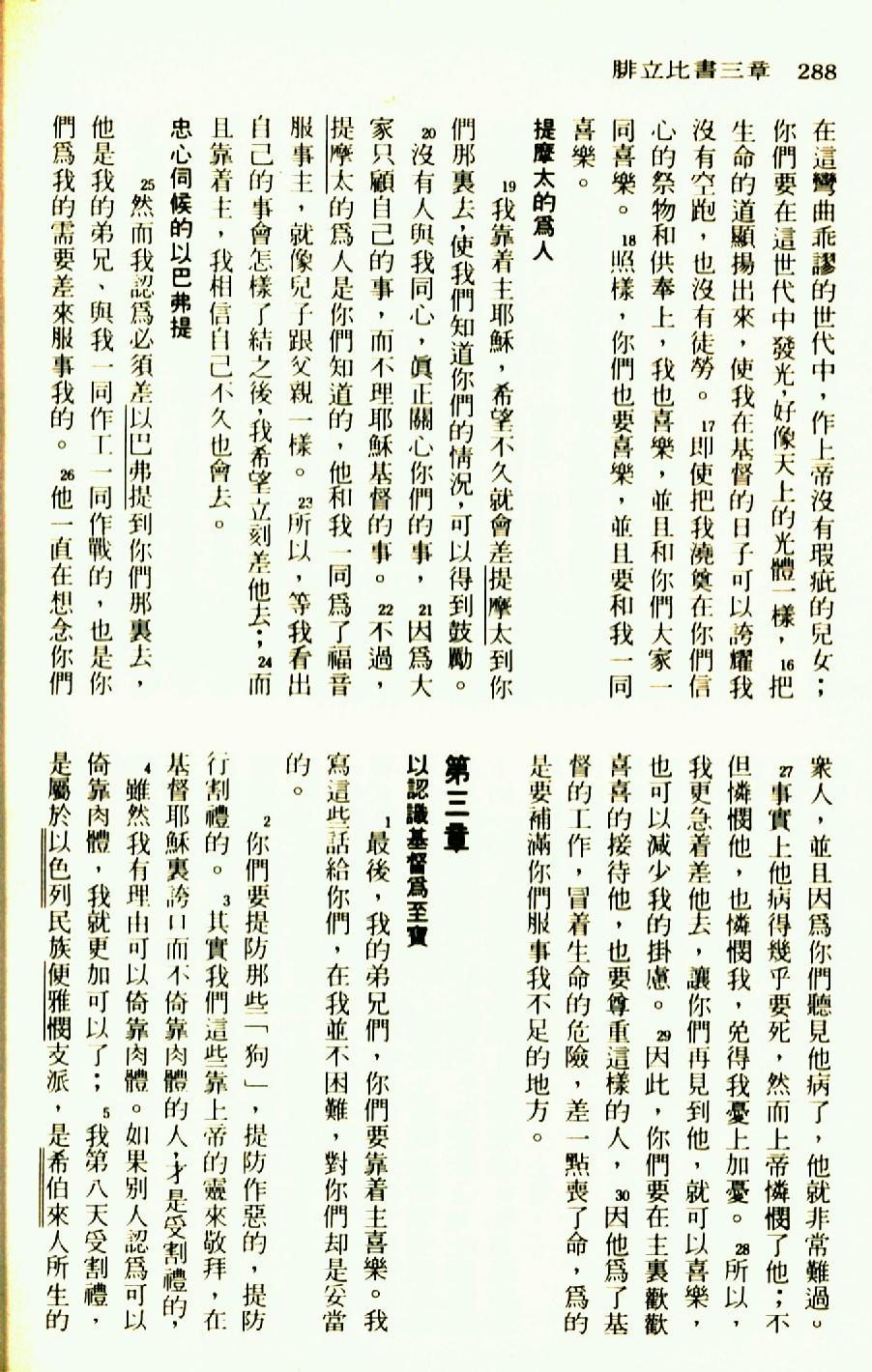 1976年聖經新譯本新約 腓立比書 2 章 16 節到 3 章 5 節