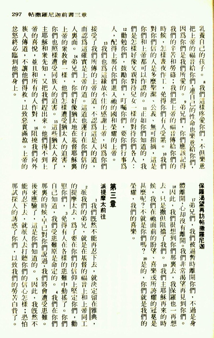 1976年聖經新譯本新約 帖撒羅尼迦前書 2 章 8 節到 3 章 5 節