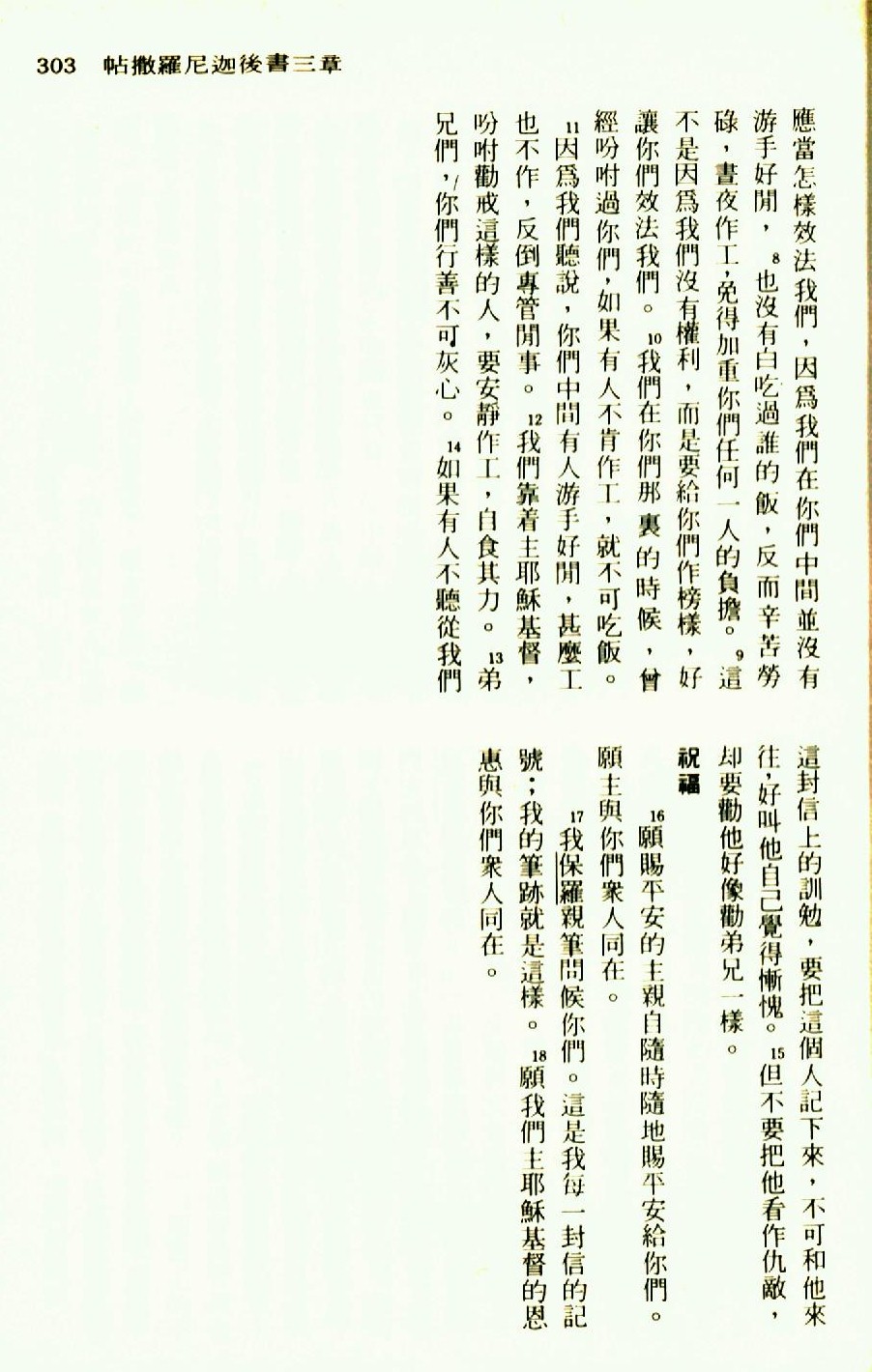 1976年聖經新譯本新約 帖撒羅尼迦後書 3 章 8 節到 3 章 18 節