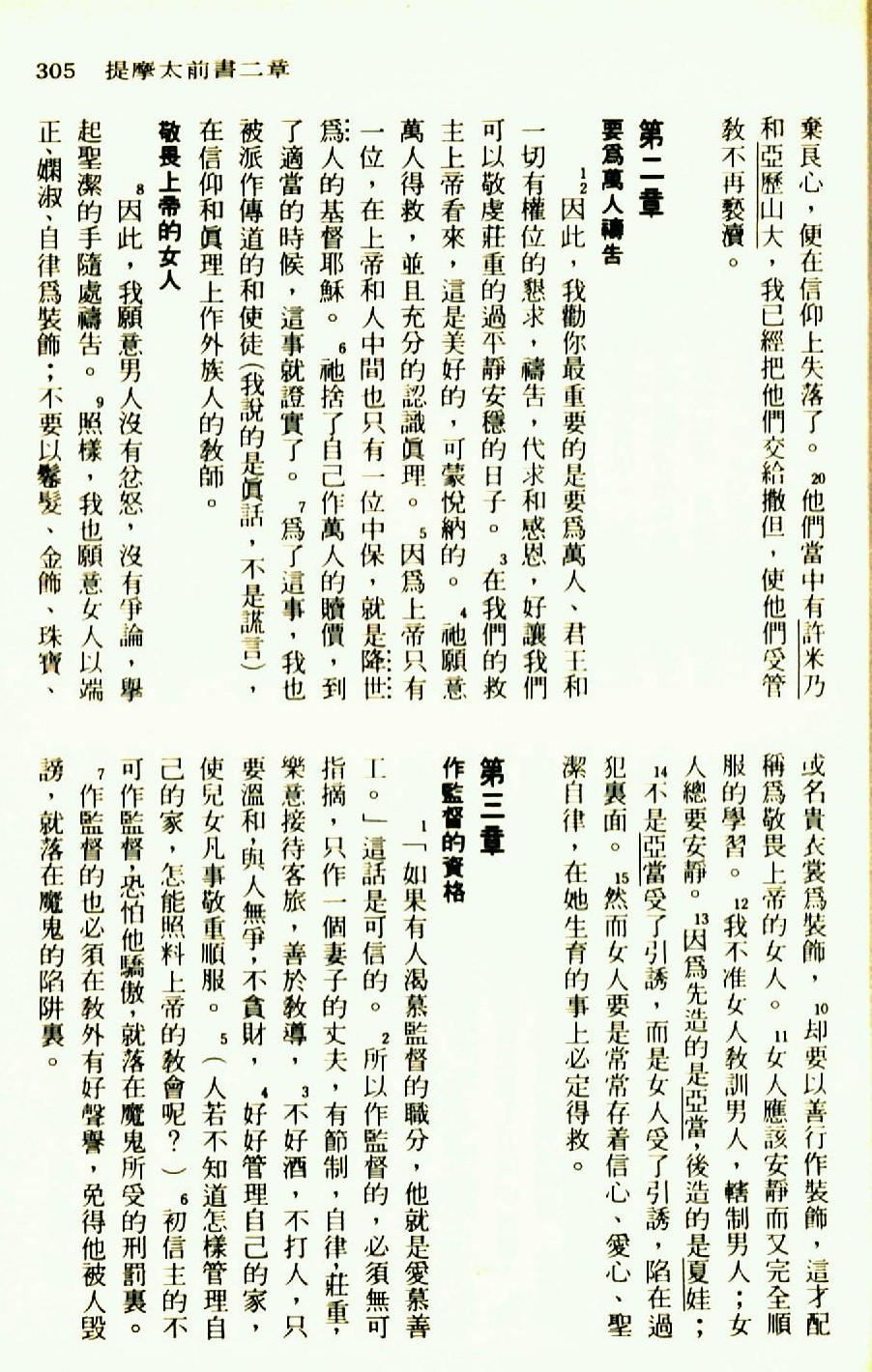 1976年聖經新譯本新約 提摩太前書 1 章 20 節到 3 章 7 節