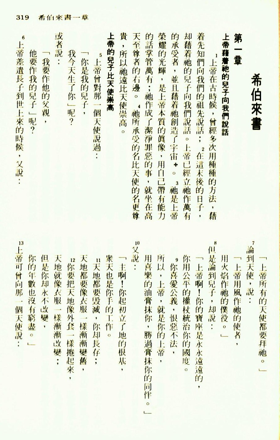1976年聖經新譯本新約 希伯來書 1 章 1 節到 1 章 13 節