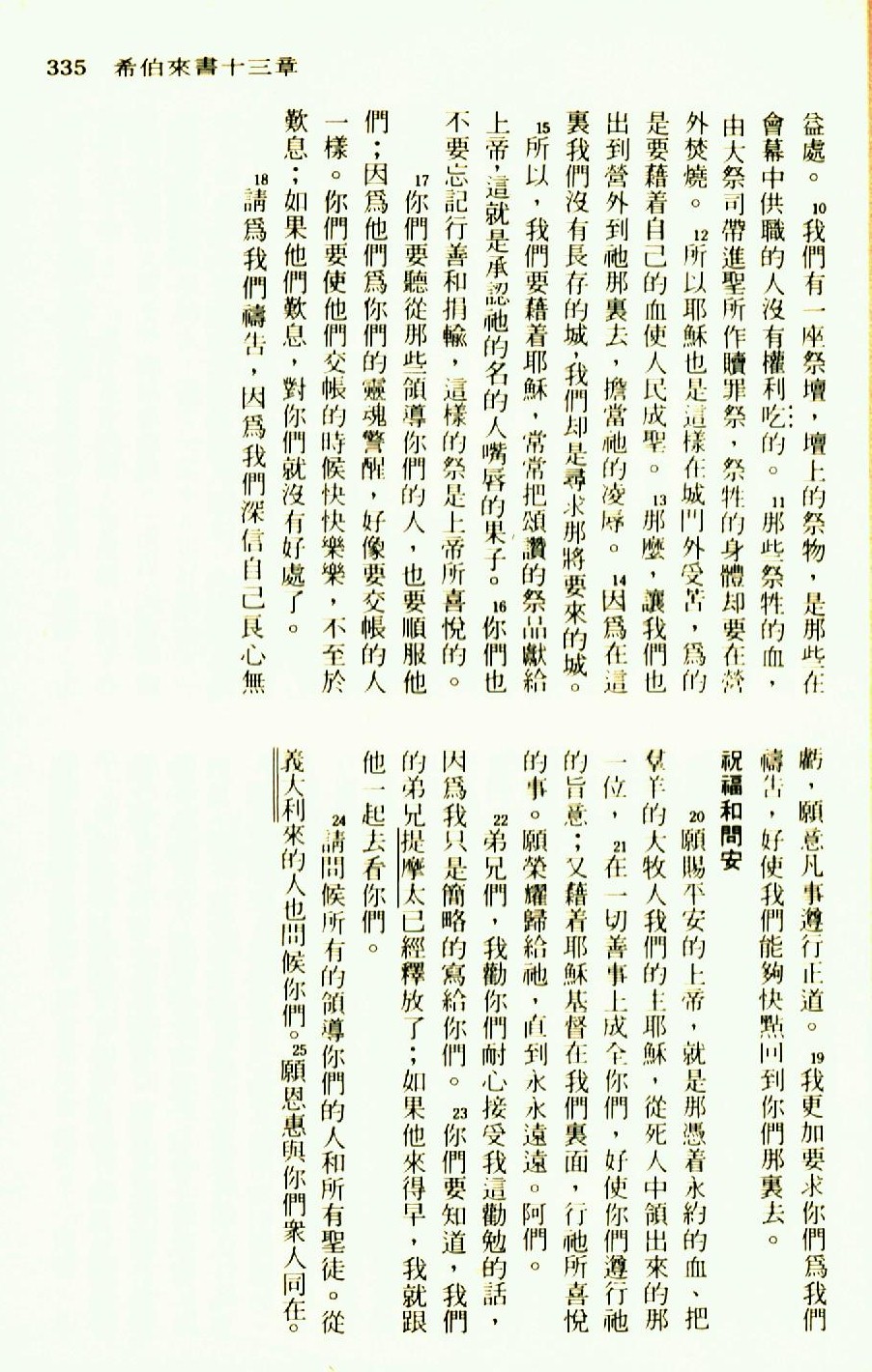 1976年聖經新譯本新約 希伯來書 13 章 10 節到 13 章 25 節