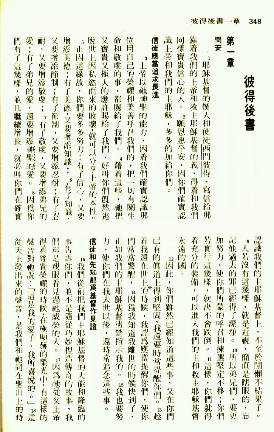 1976年聖經新譯本新約 彼得後書 1 章 1 節到 1 章 18 節