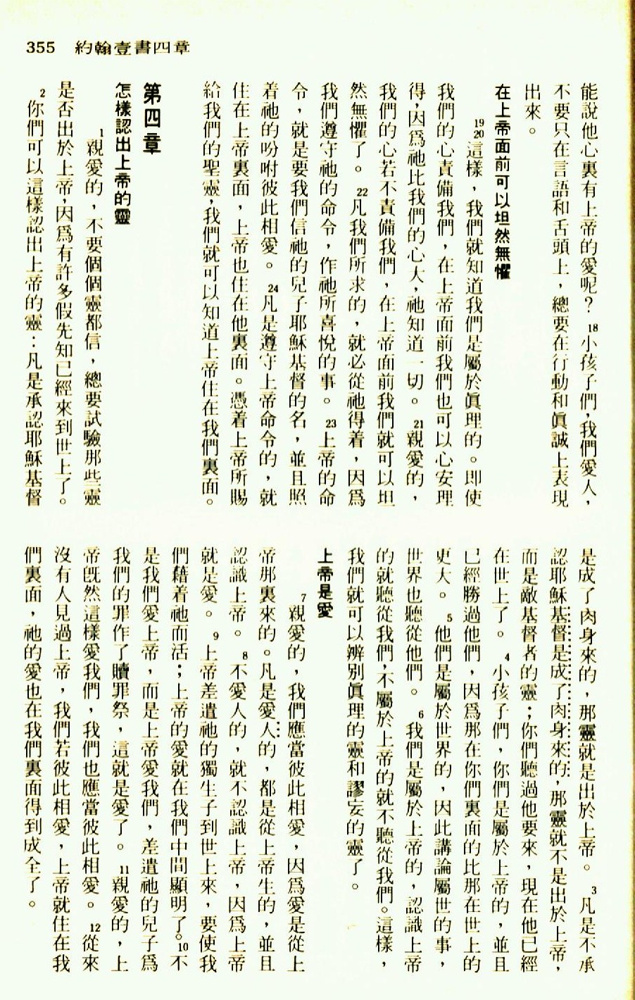 1976年聖經新譯本新約 約翰一書 3 章 18 節到 4 章 12 節