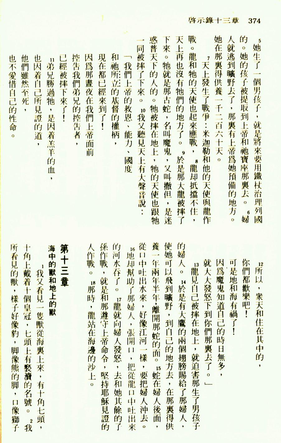1976年聖經新譯本新約 啟示錄 12 章 5 節到 13 章 2 節