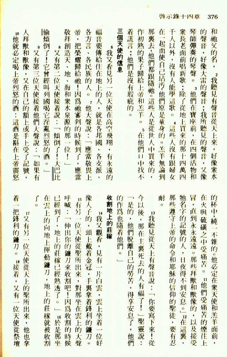 1976年聖經新譯本新約 啟示錄 14 章 2 節到 14 章 18 節