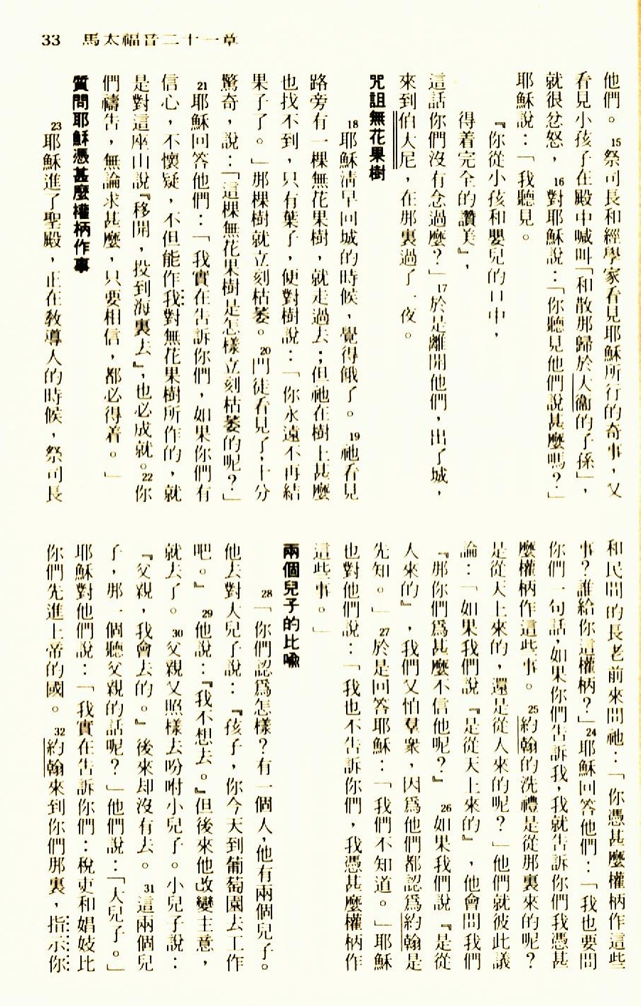 1976年聖經新譯本新約 馬太福音 21 章 15 節到 21 章 32 節