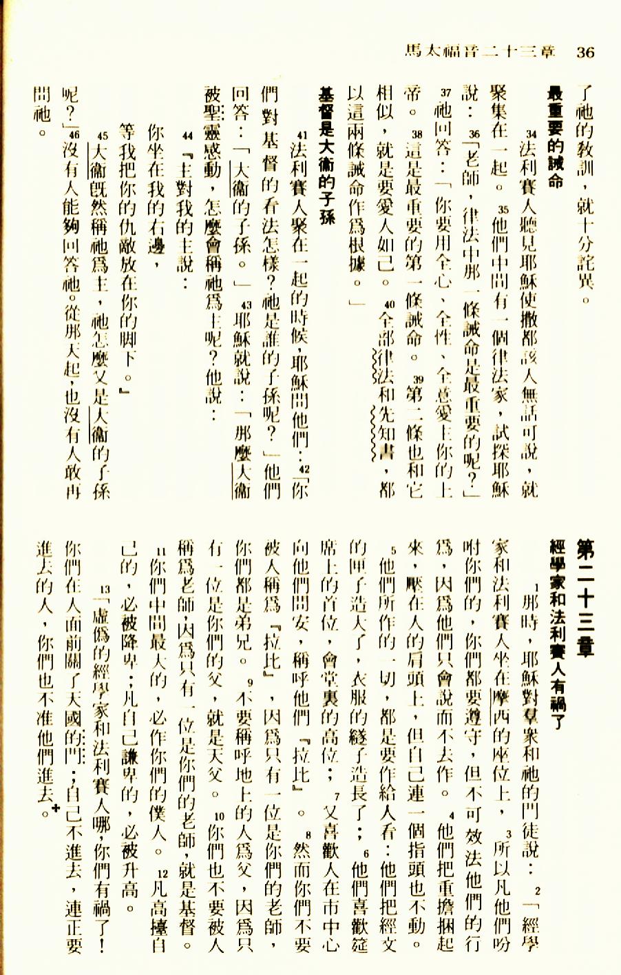 1976年聖經新譯本新約 馬太福音 22 章 34 節到 23 章 14 節