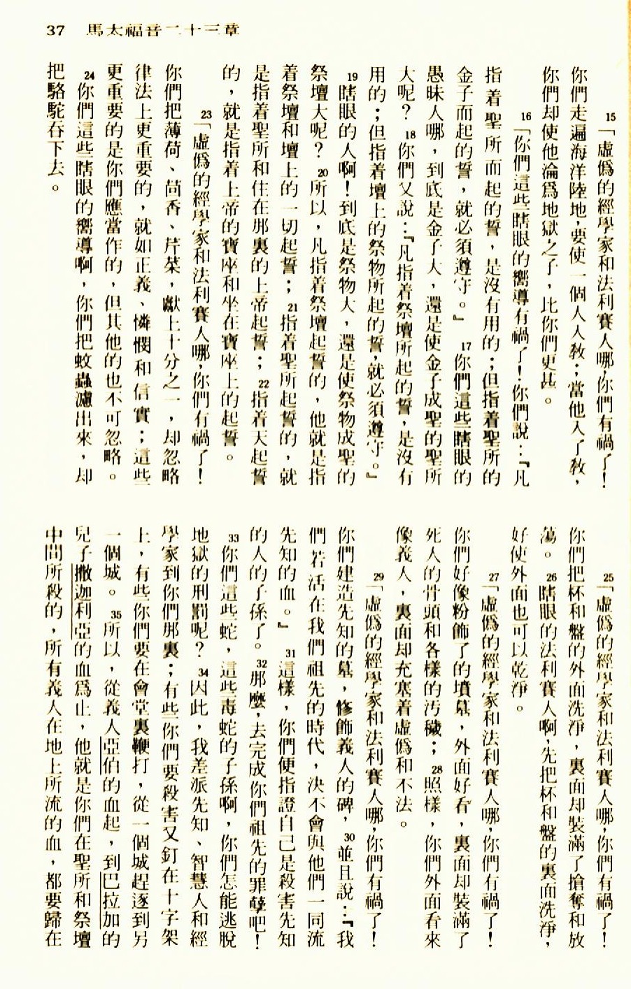 1976年聖經新譯本新約 馬太福音 23 章 15 節到 23 章 35 節