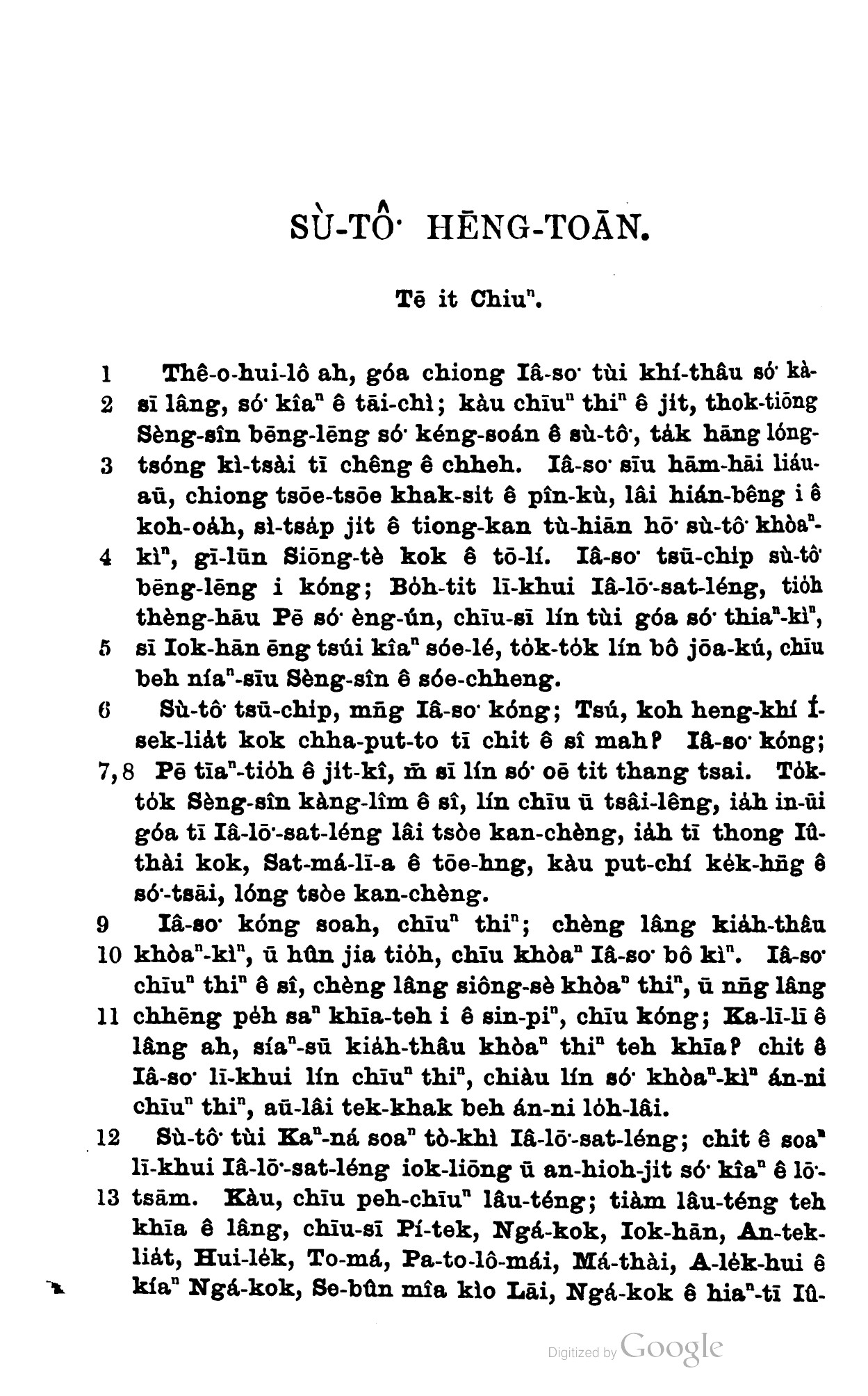 1898年新約全書 使徒行傳 1 章 1 節到 1 章 13 節