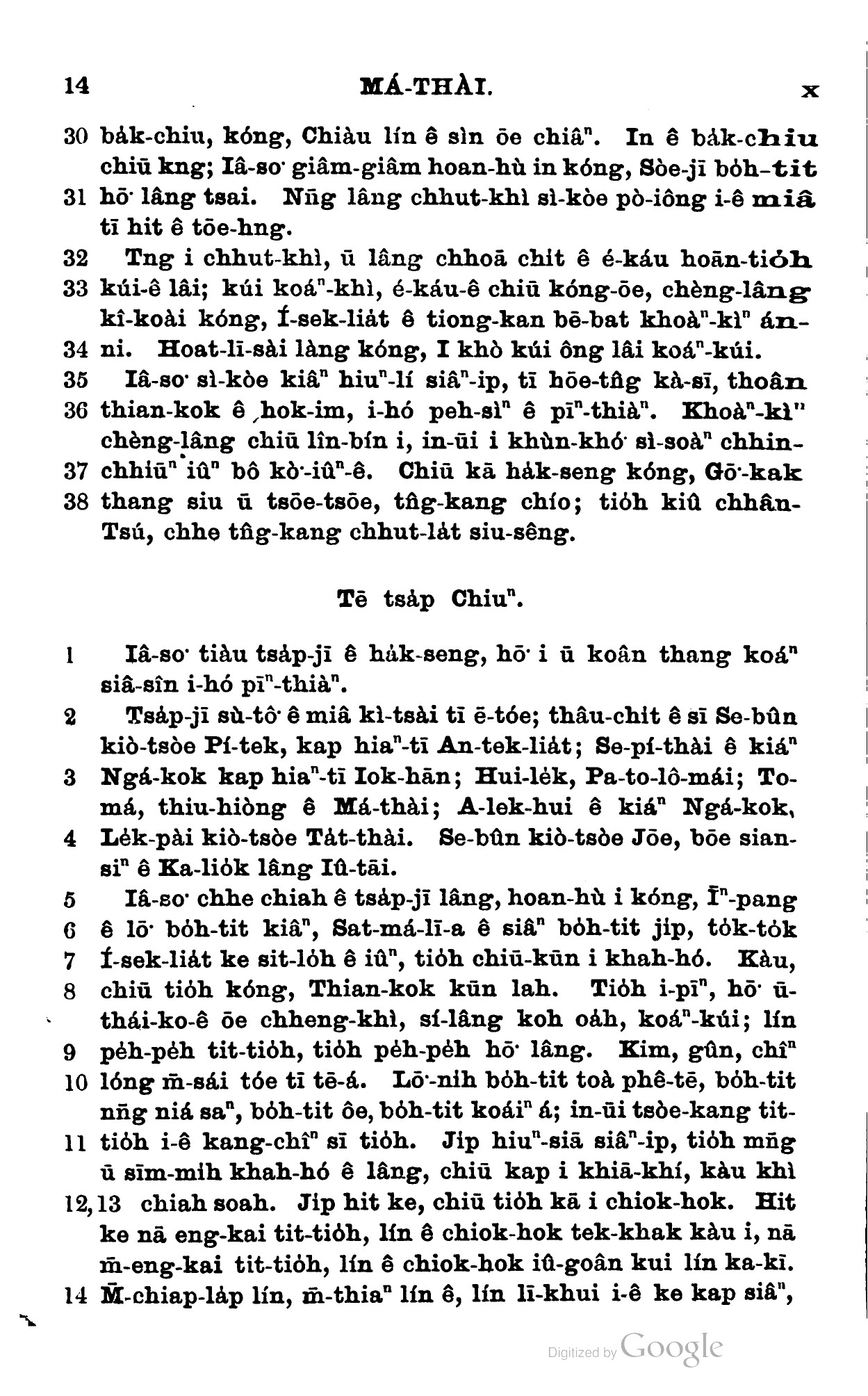 1898年新約全書 馬太福音 9 章 38 節到 10 章 14 節