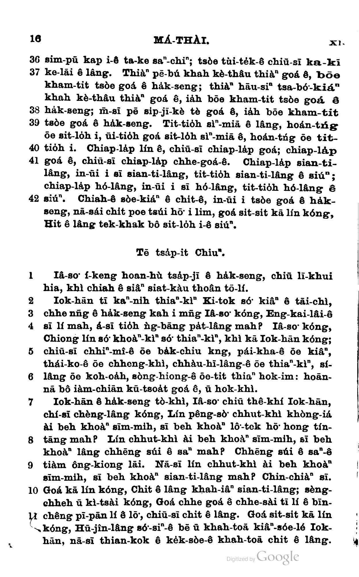 1898年新約全書 馬太福音 10 章 42 節到 11 章 11 節