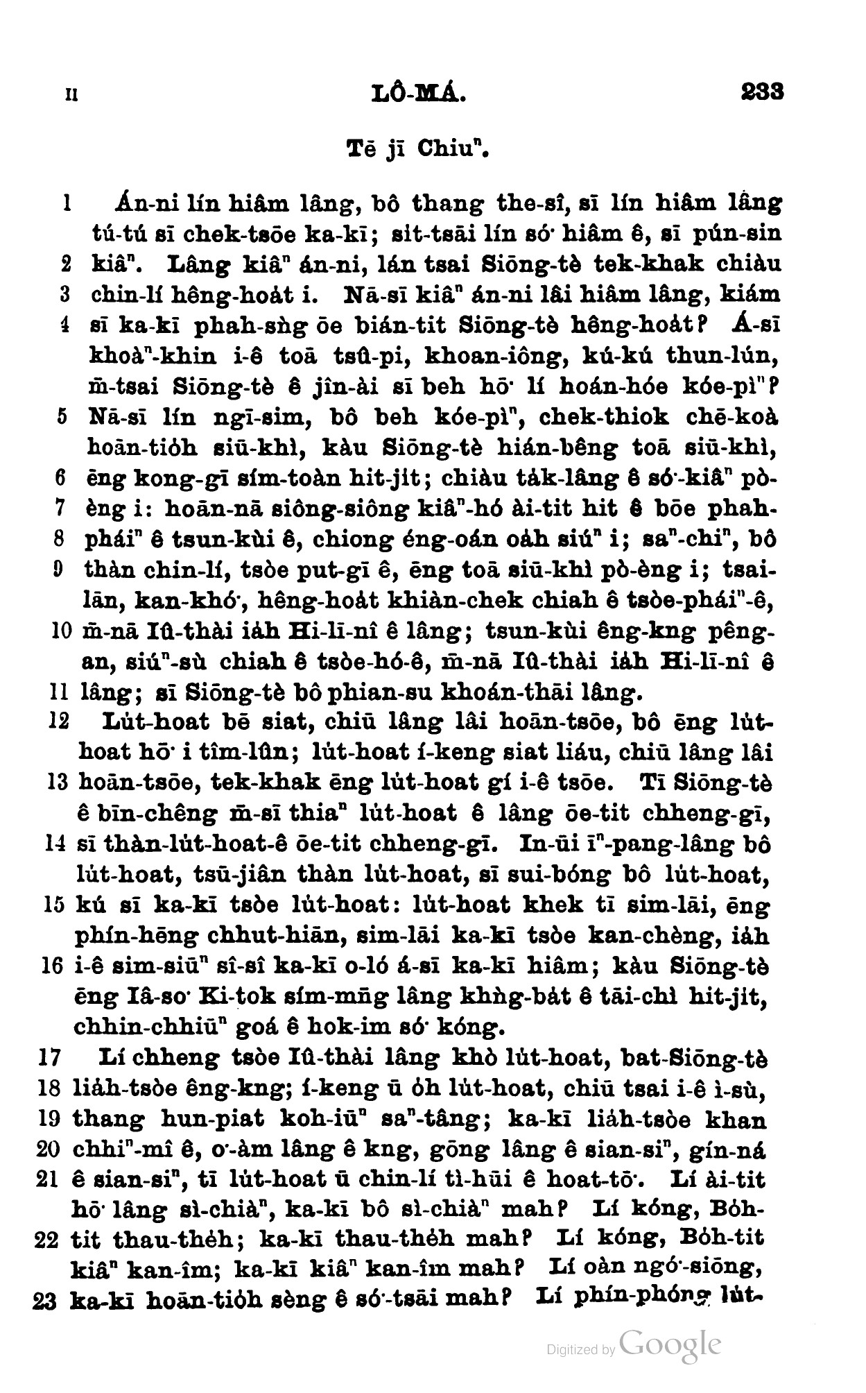 1898年新約全書 羅馬書 2 章 1 節到 2 章 23 節