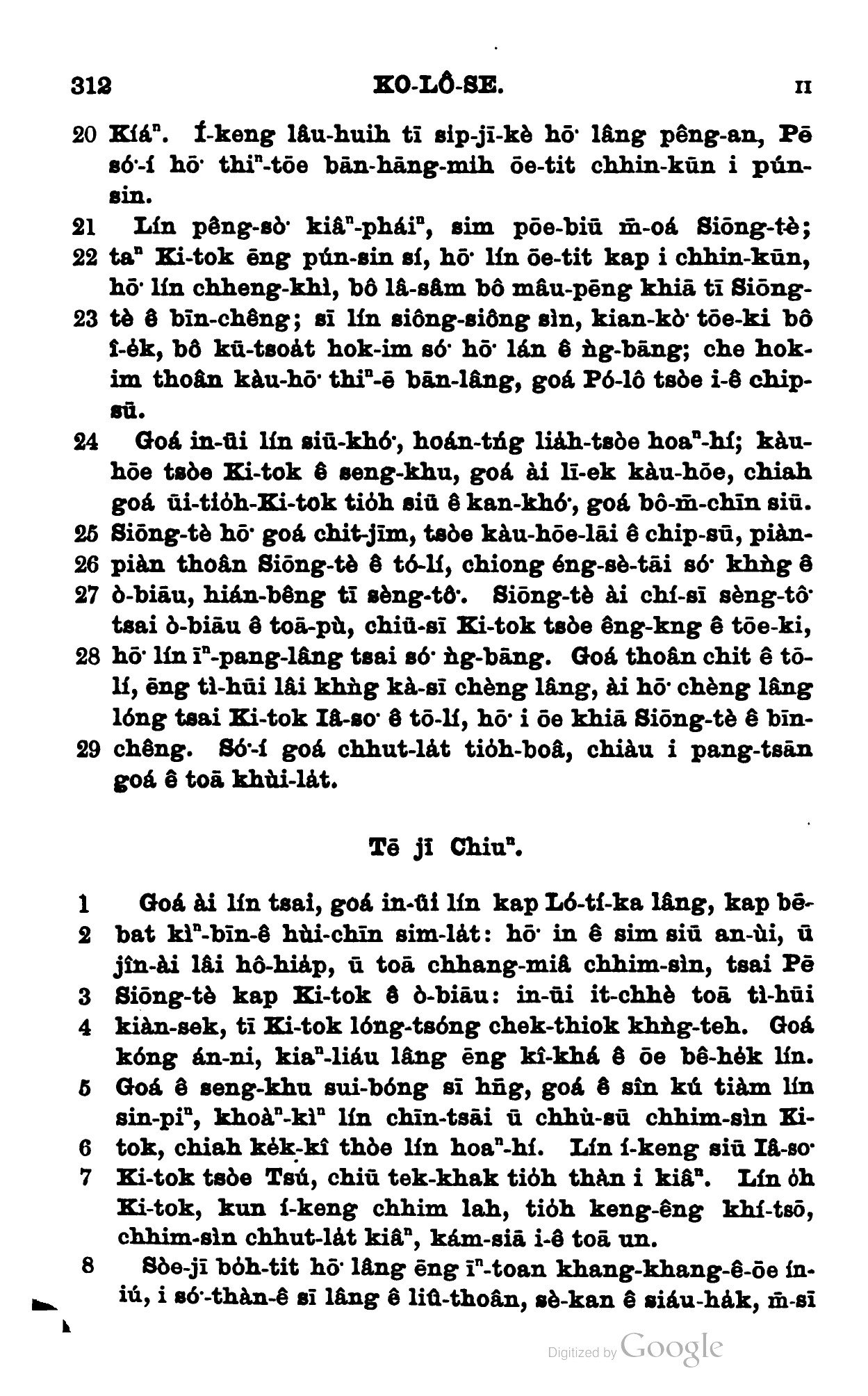 1898年新約全書 歌羅西書 1 章 20 節到 2 章 8 節