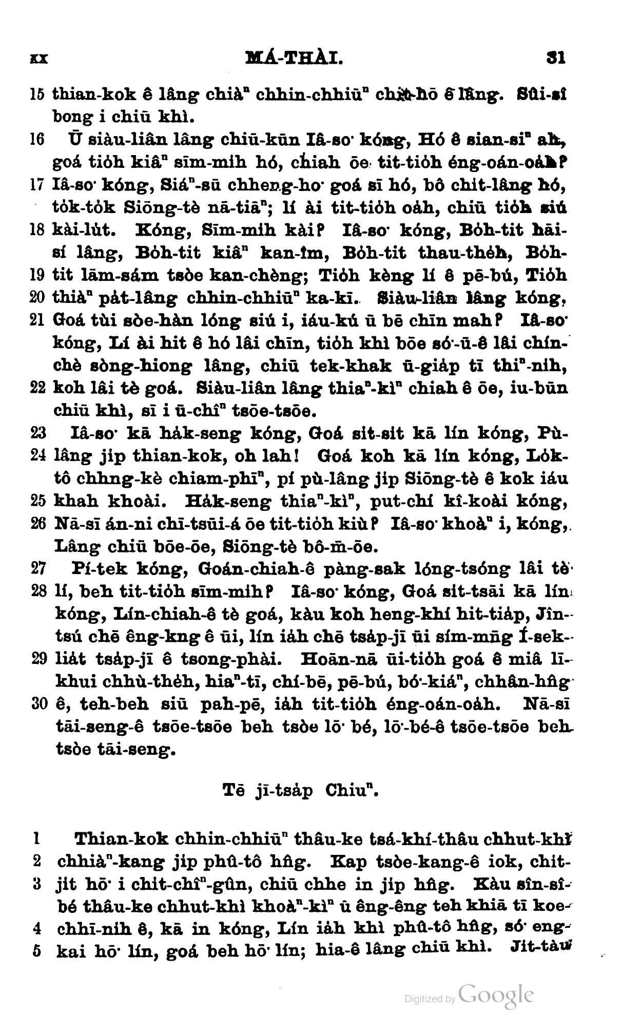 1898年新約全書 馬太福音 19 章 15 節到 20 章 5 節