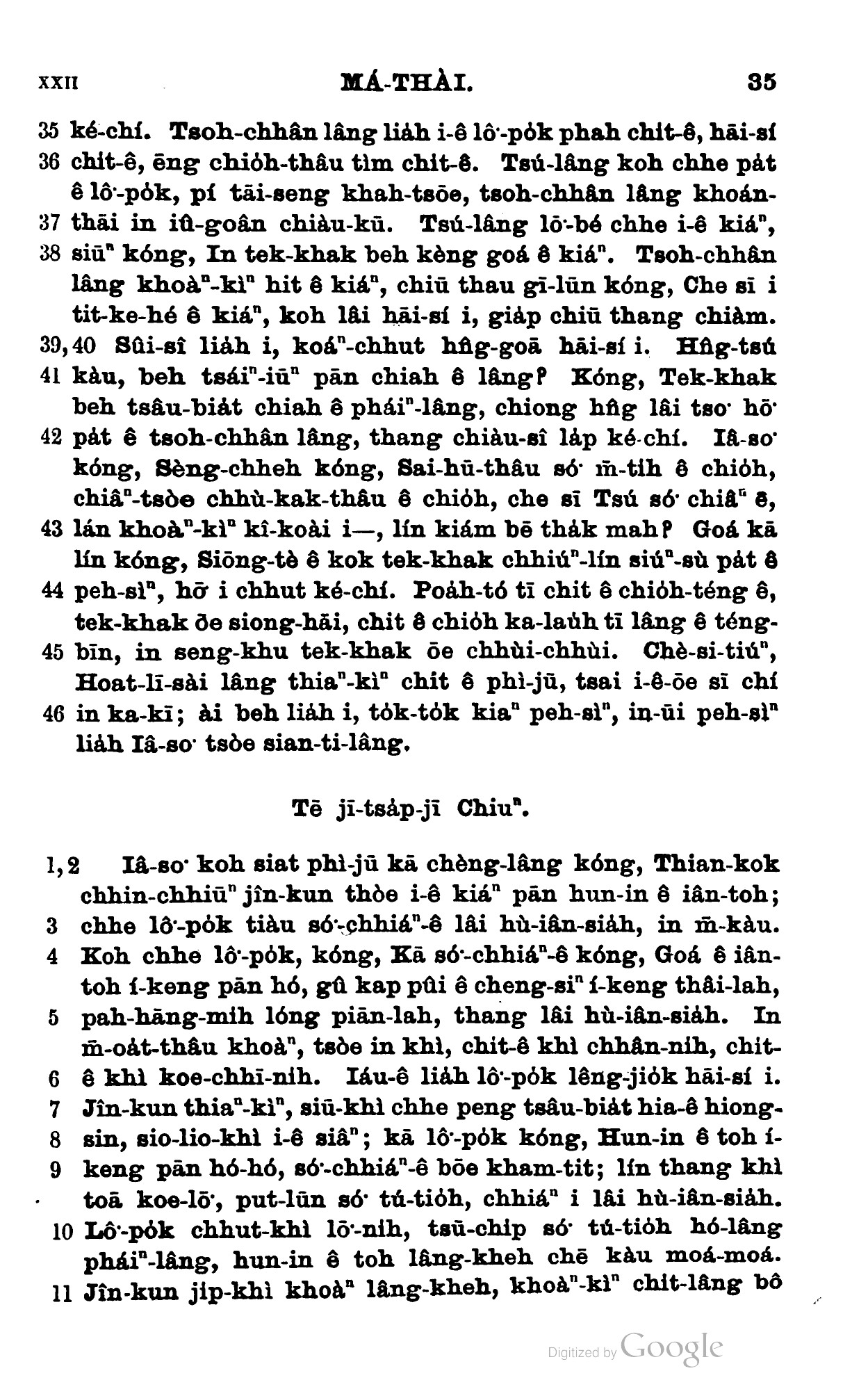 1898年新約全書 馬太福音 21 章 35 節到 22 章 11 節