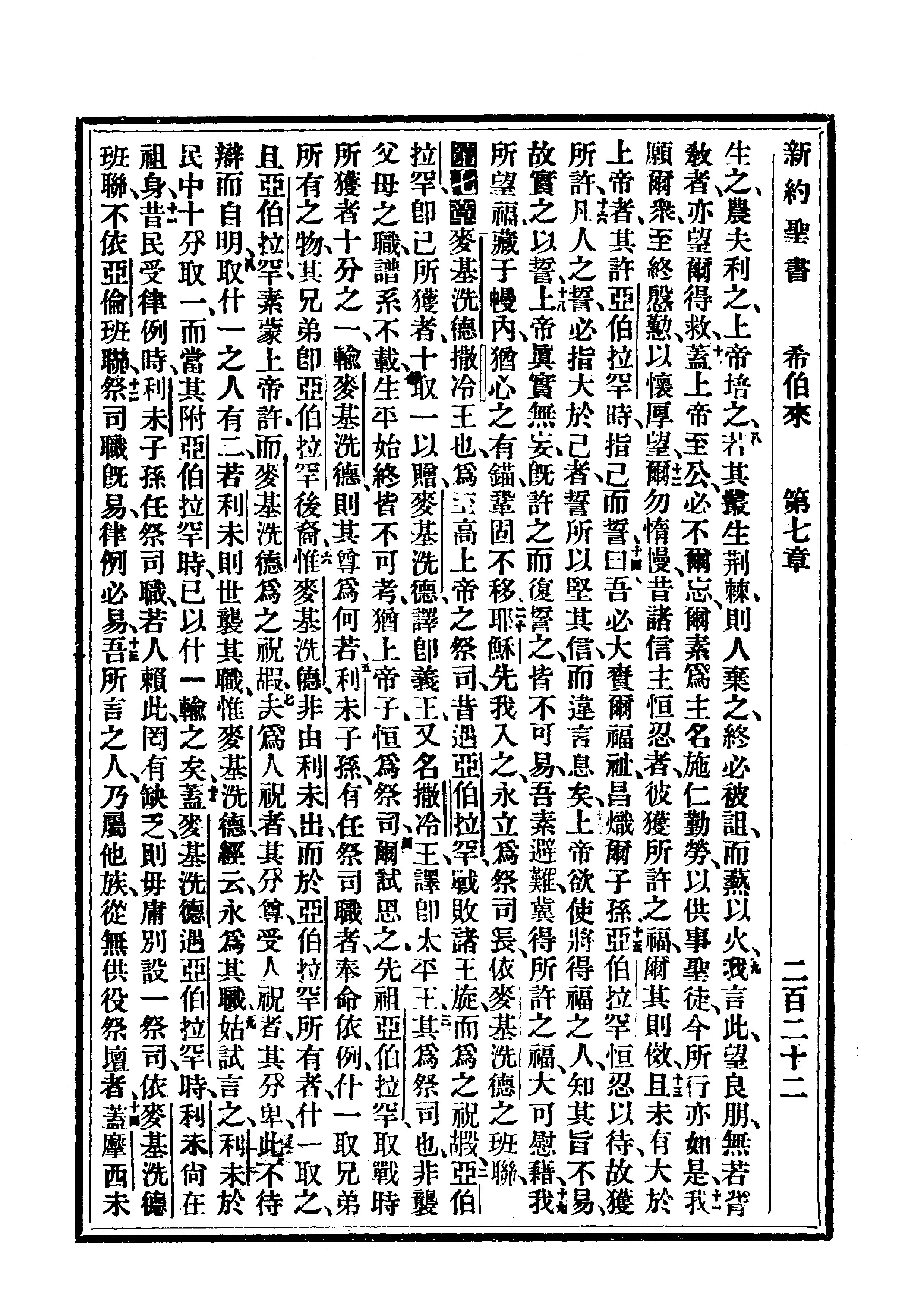 1910年委辦譯本 希伯來書 6 章 8 節到 7 章 14 節
