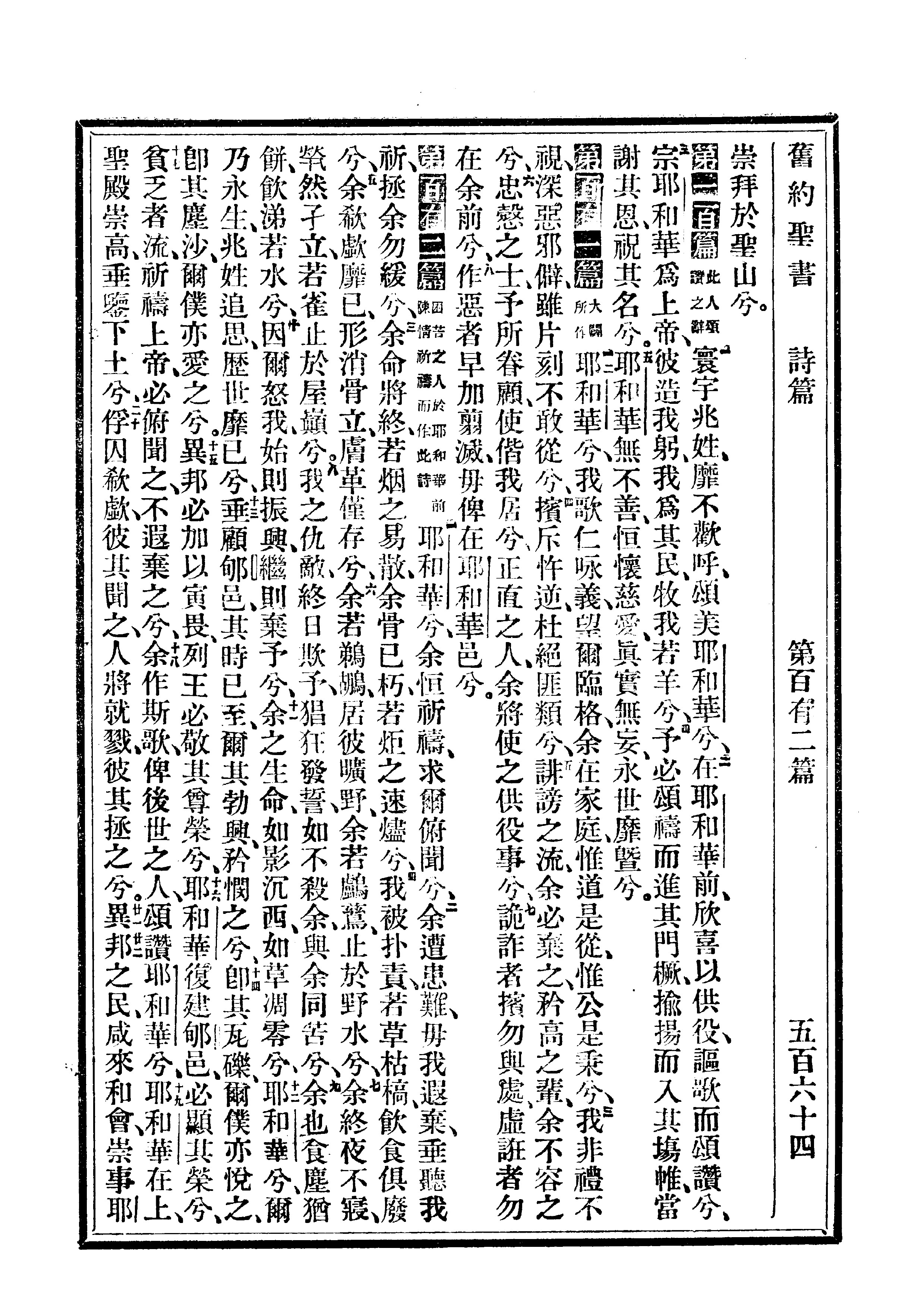 1910年委辦譯本 詩篇 100 章 1 節到 102 章 22 節