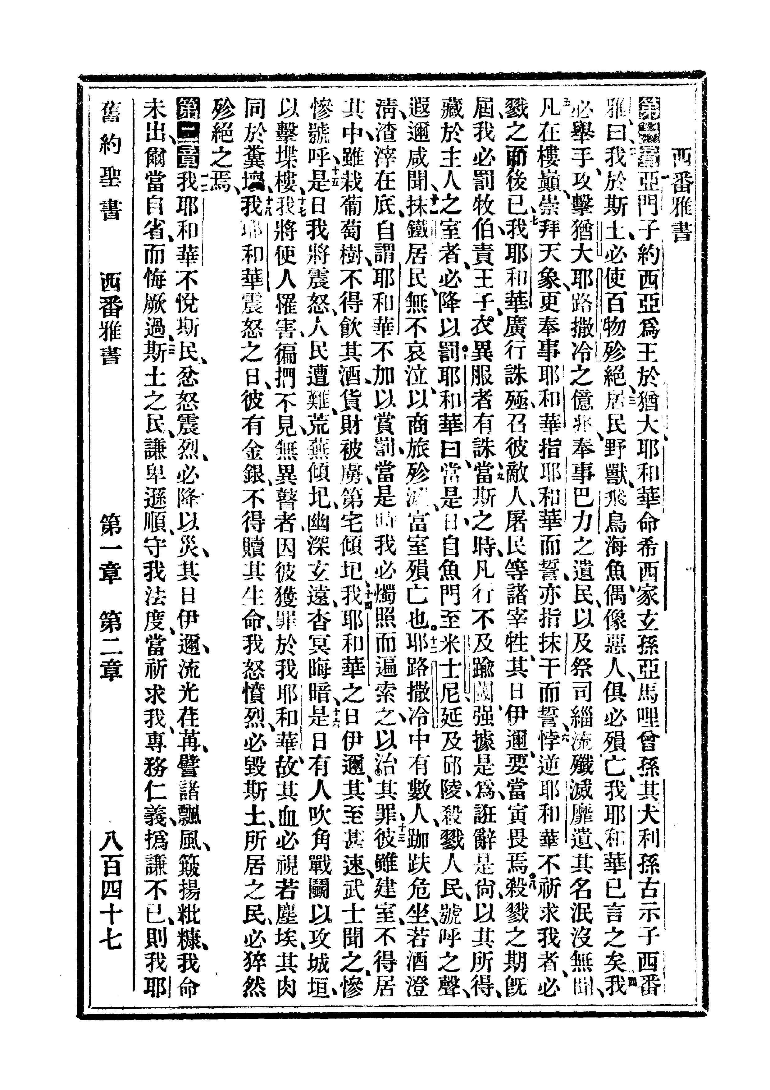 1910年委辦譯本 西番雅書 1 章 1 節到 2 章 3 節