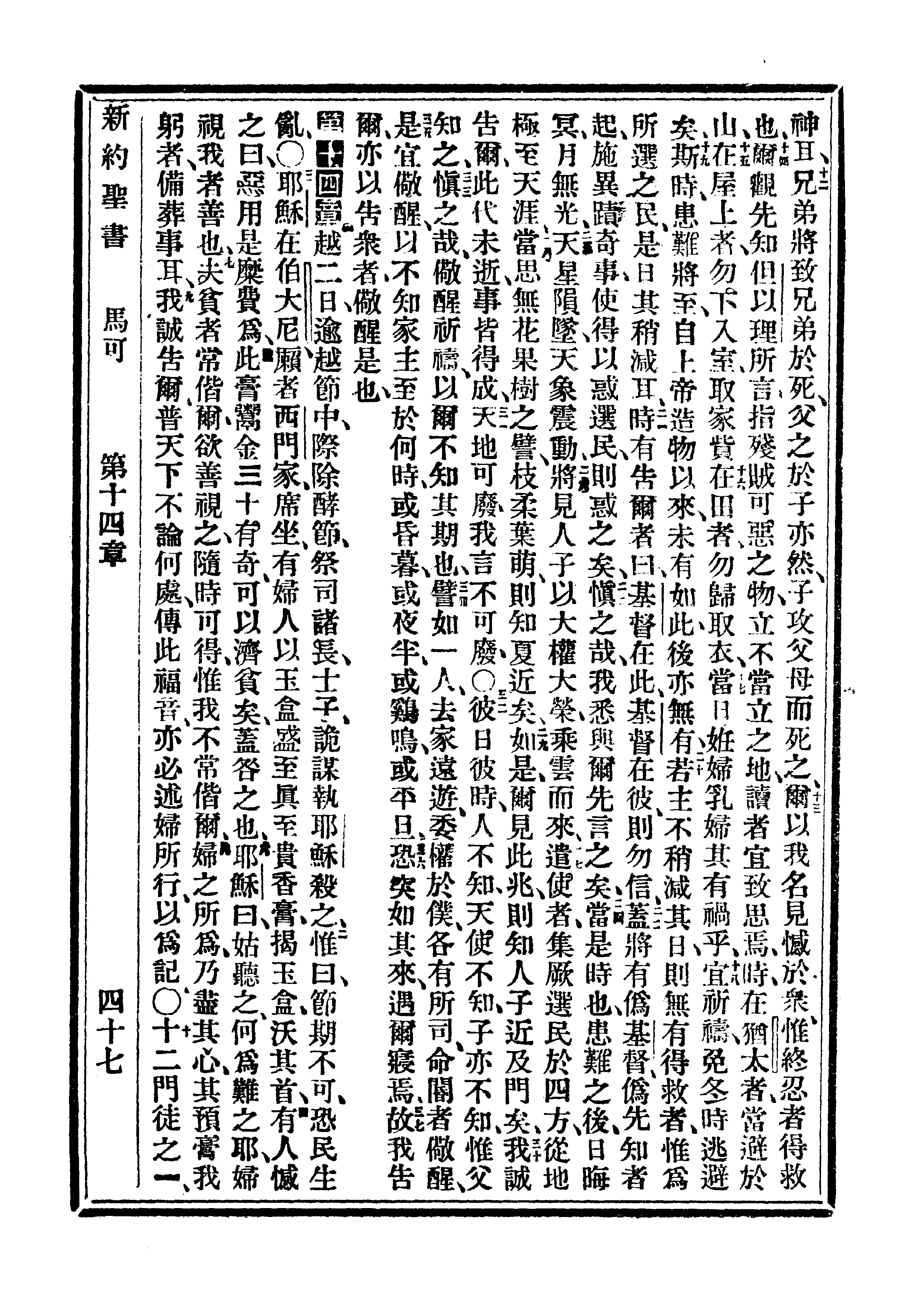 1910年委辦譯本 馬可福音 13 章 12 節到 14 章 10 節