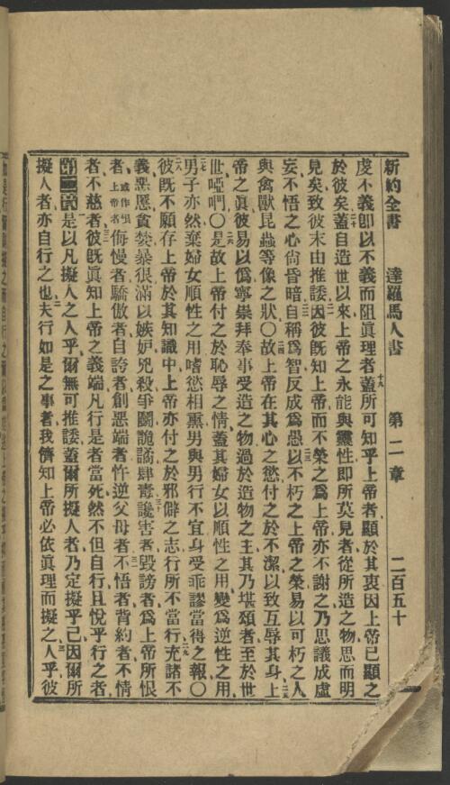1912年淺文理和合本新約 羅馬書 1 章 19 節到 2 章 3 節
