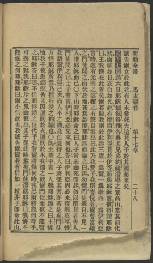 1912年淺文理和合本新約 馬太福音 16 章 28 節到 17 章 20 節