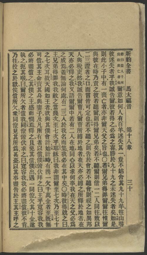 1912年淺文理和合本新約 馬太福音 18 章 12 節到 18 章 32 節
