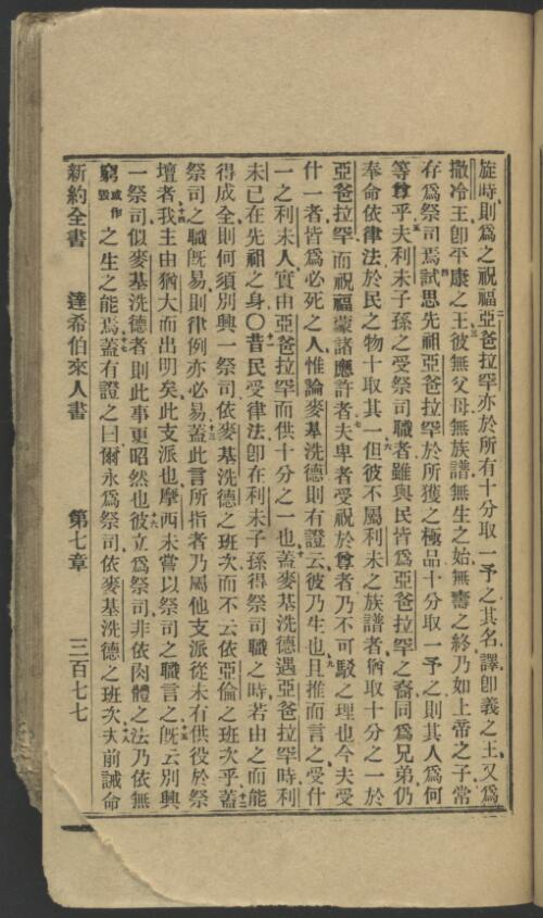 1912年淺文理和合本新約 希伯來書 7 章 2 節到 7 章 18 節