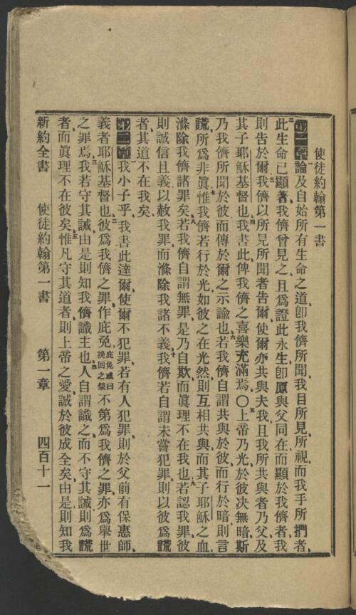 1912年淺文理和合本新約 約翰一書 1 章 1 節到 2 章 5 節