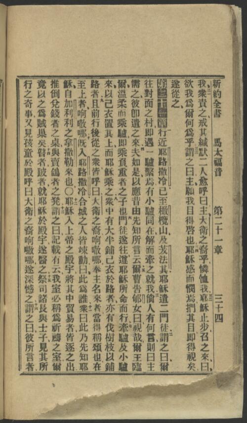 1912年淺文理和合本新約 馬太福音 20 章 31 節到 21 章 16 節