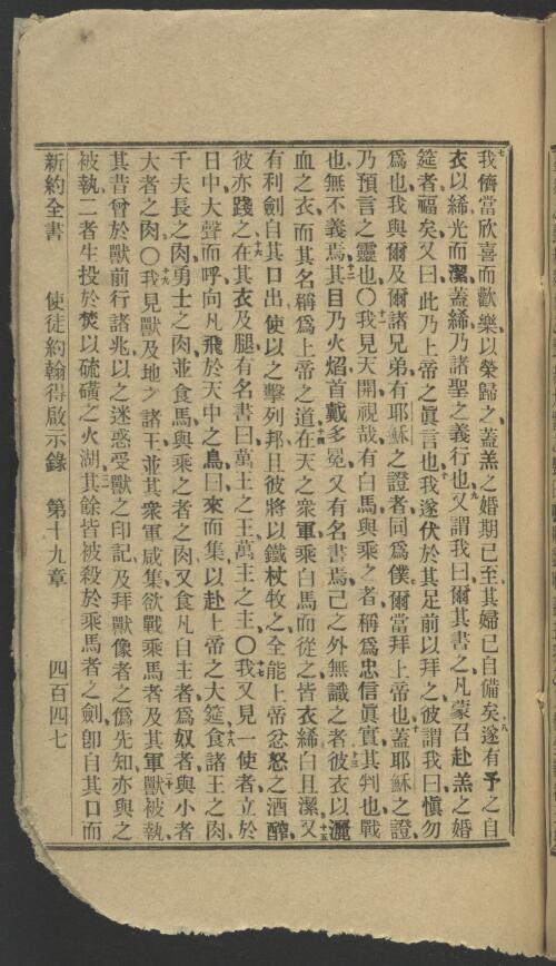 1912年淺文理和合本新約 啟示錄 19 章 7 節到 19 章 21 節