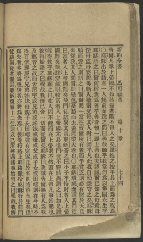 1912年淺文理和合本新約 馬可福音 10 章 16 節到 10 章 33 節