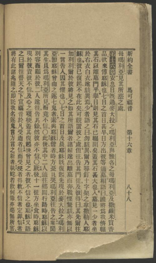 1912年淺文理和合本新約 馬可福音 16 章 1 節到 16 章 18 節