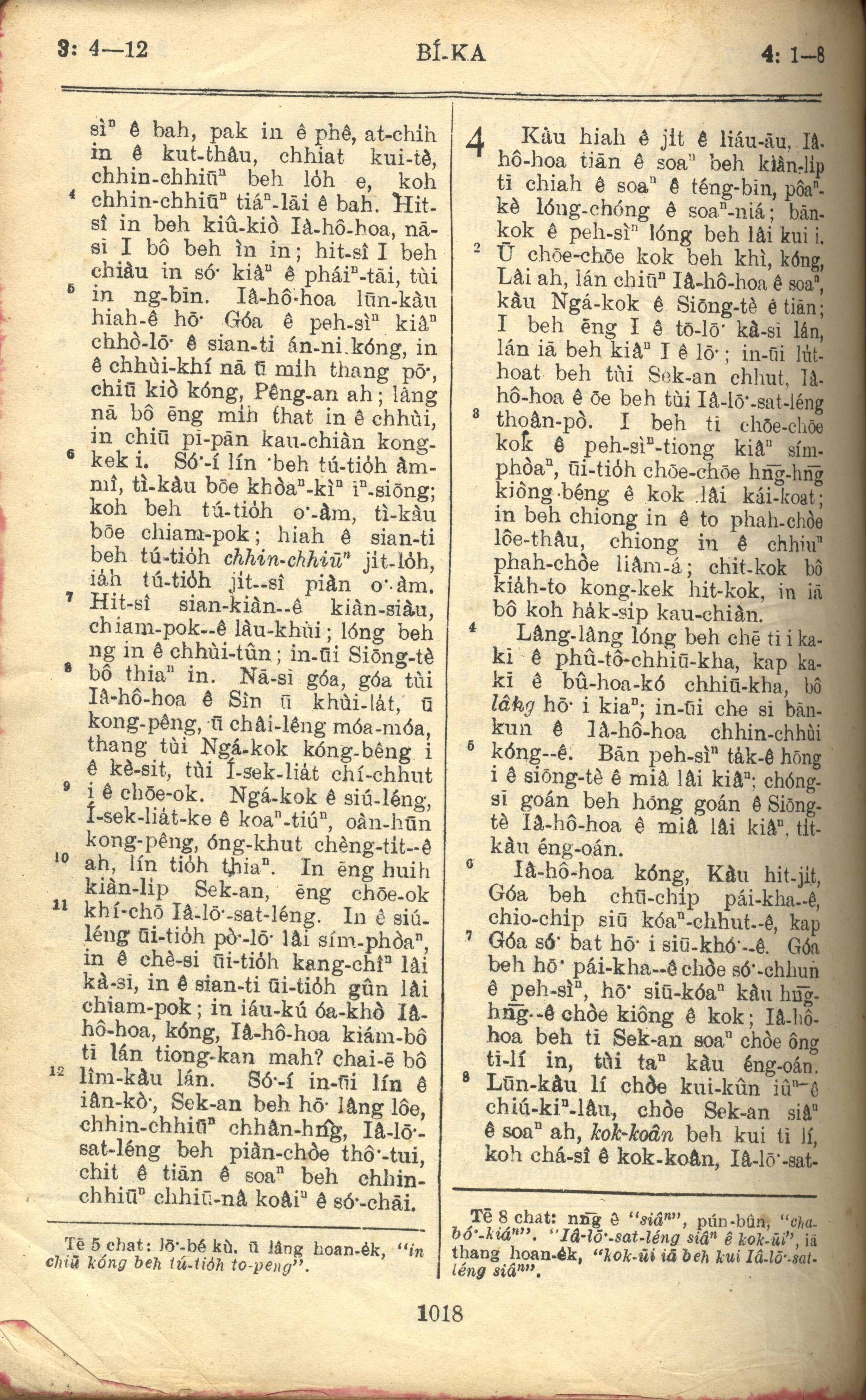 1957年巴克禮全羅台語聖經串珠版 彌迦書 3 章 4 節到 4 章 8 節
