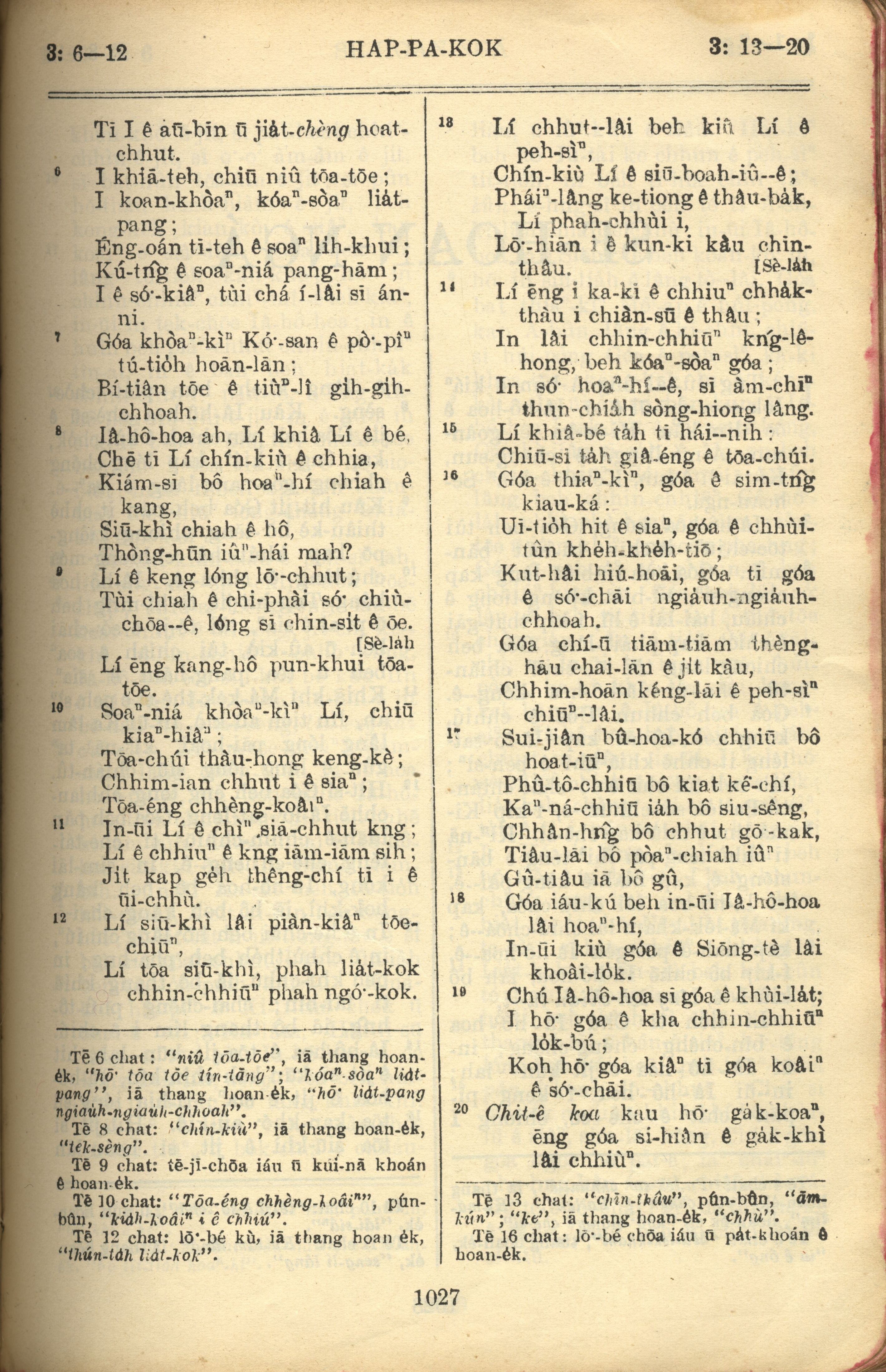1957年巴克禮全羅台語聖經串珠版 哈巴谷書 3 章 6 節到 3 章 20 節