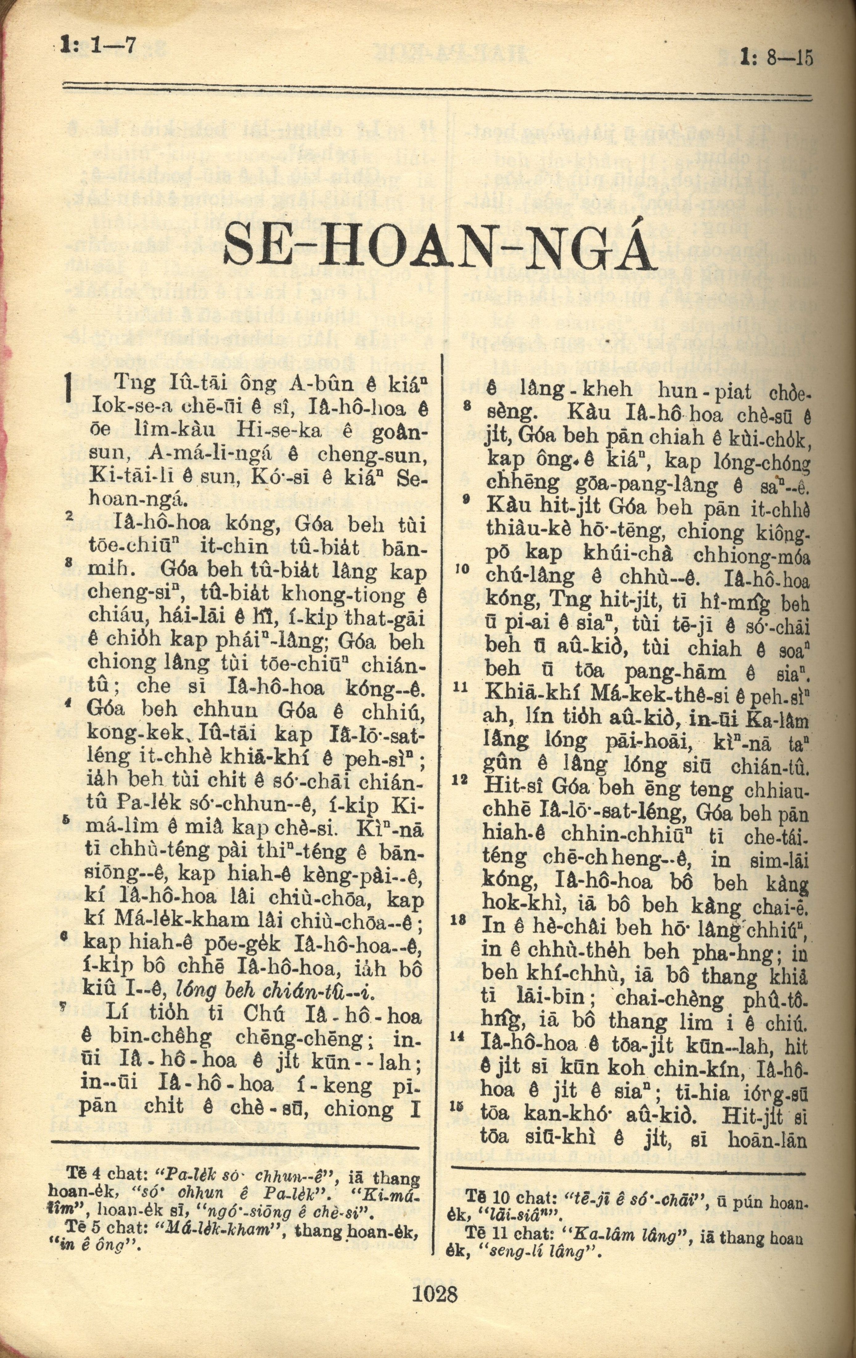 1957年巴克禮全羅台語聖經串珠版 西番雅書 1 章 1 節到 1 章 15 節
