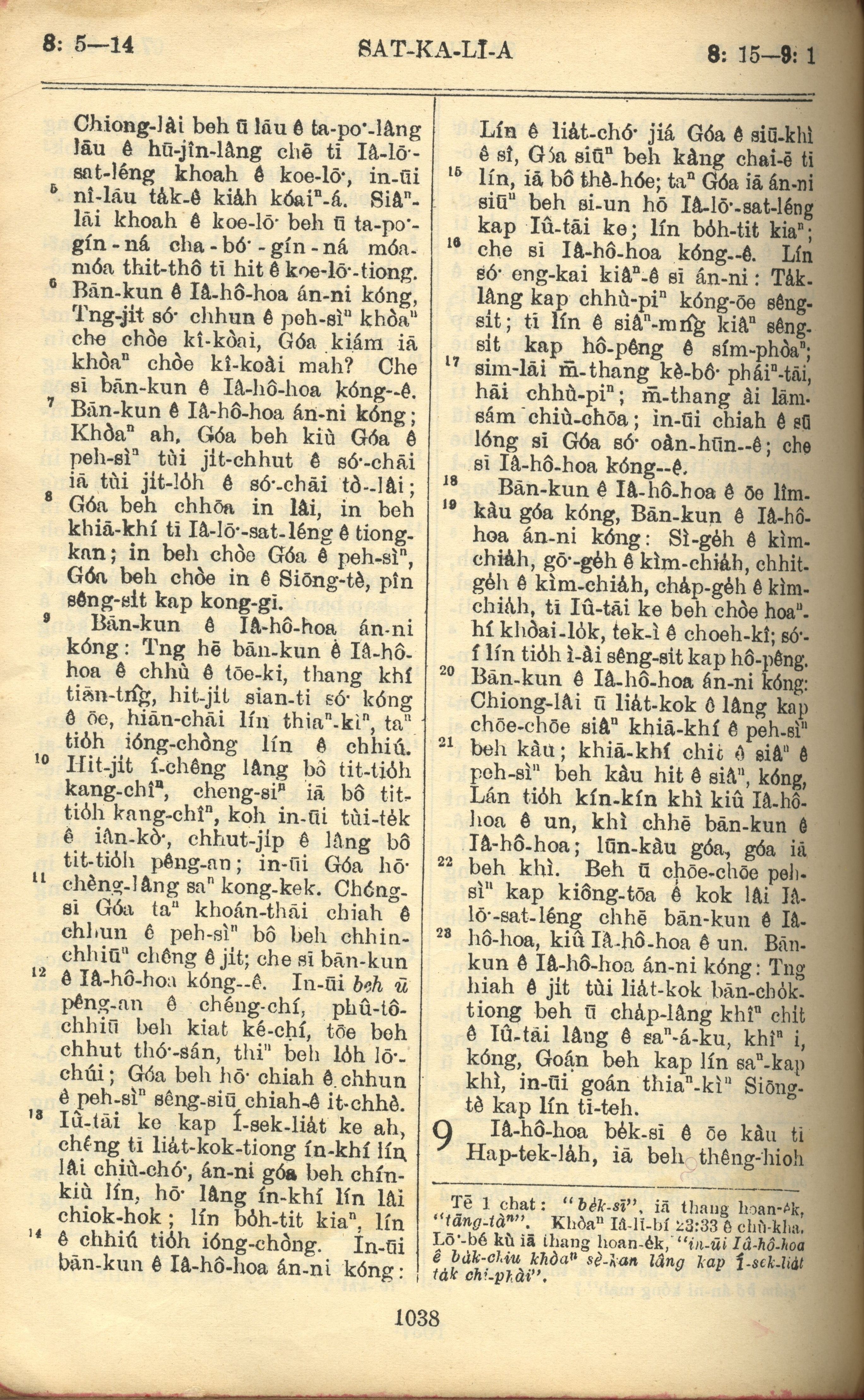 1957年巴克禮全羅台語聖經串珠版 撒迦利亞書 8 章 5 節到 9 章 1 節
