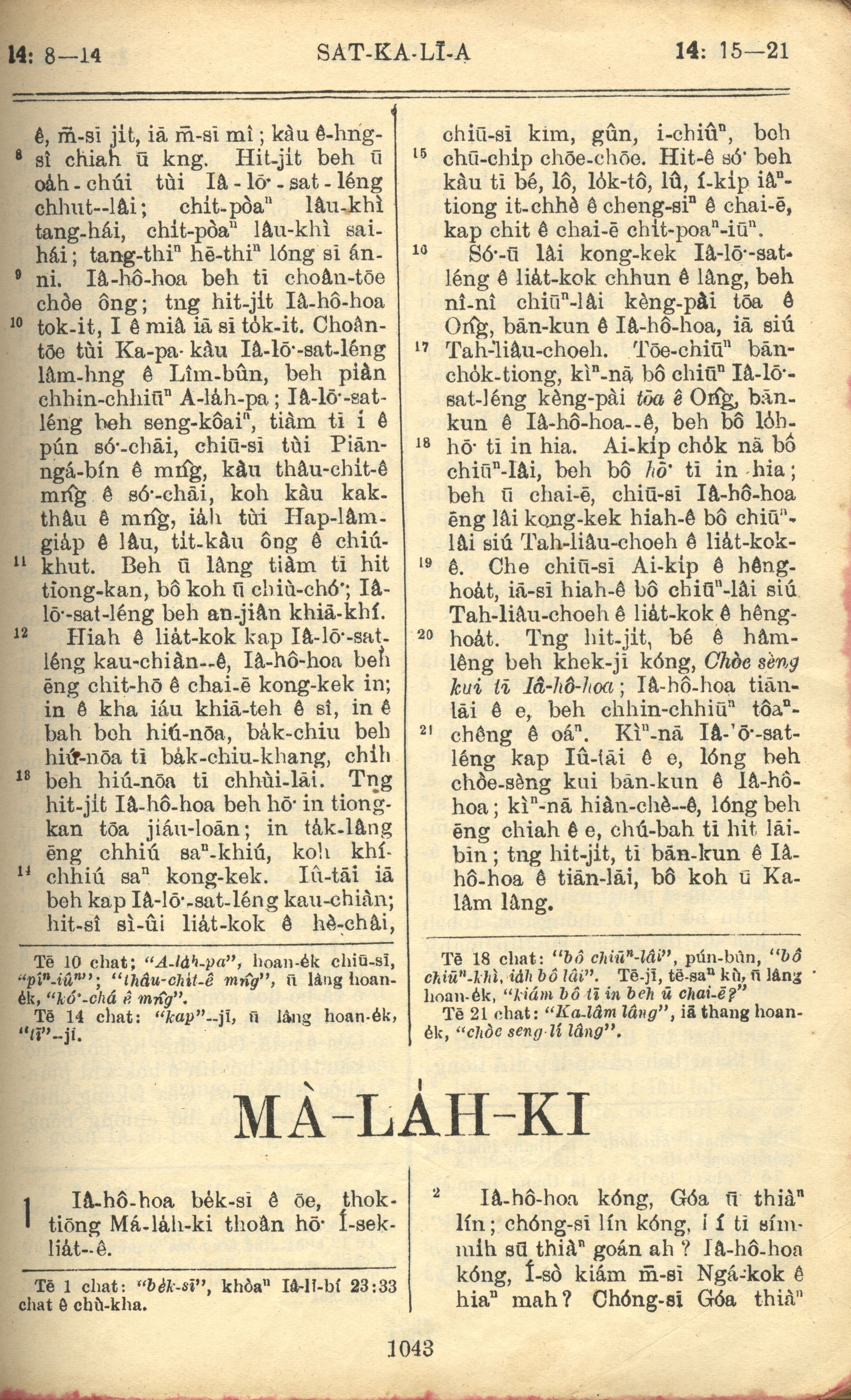 1957年巴克禮全羅台語聖經串珠版 撒迦利亞書 14 章 8 節到 14 章 21 節