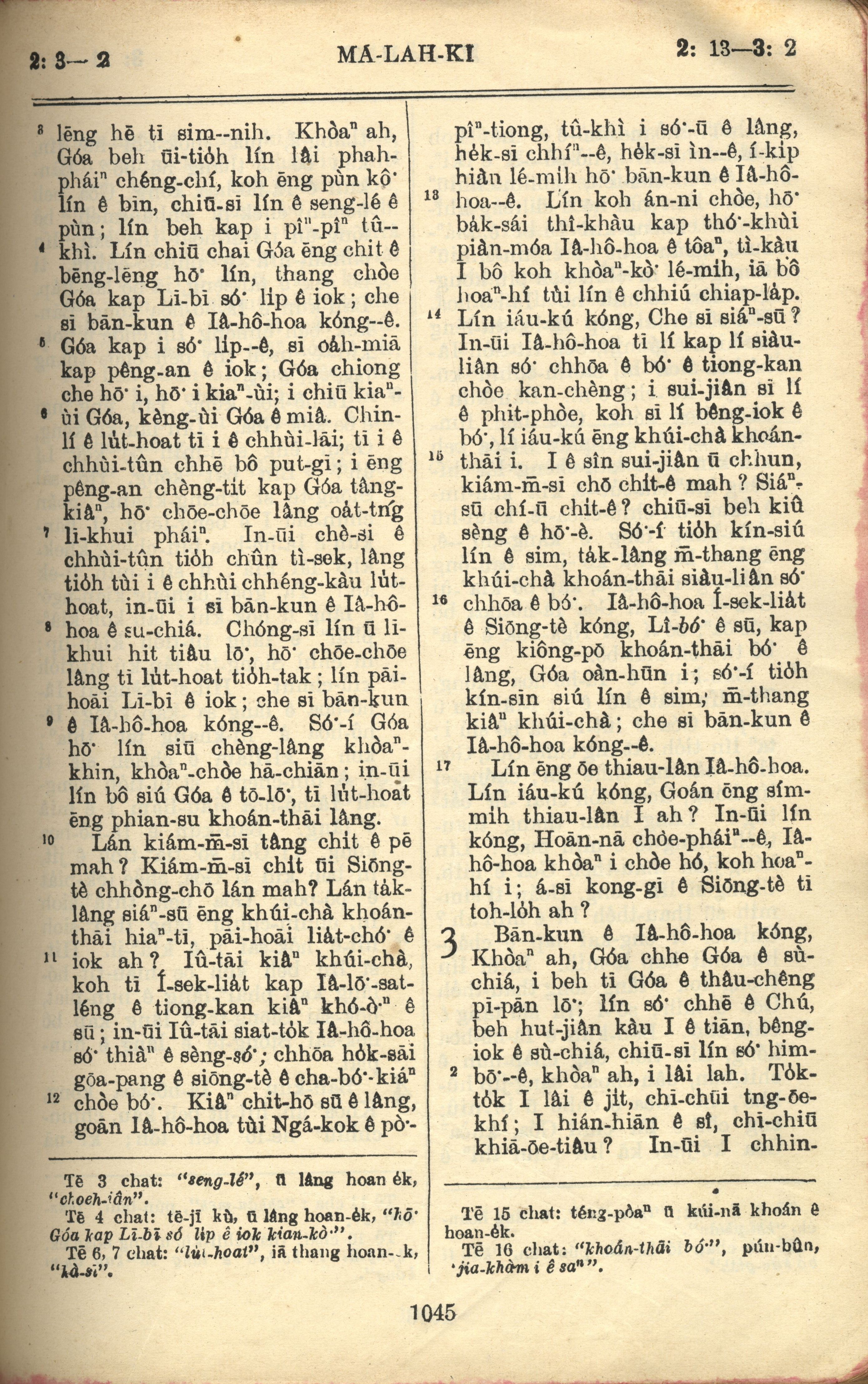 1957年巴克禮全羅台語聖經串珠版 瑪拉基書 2 章 3 節到 3 章 2 節