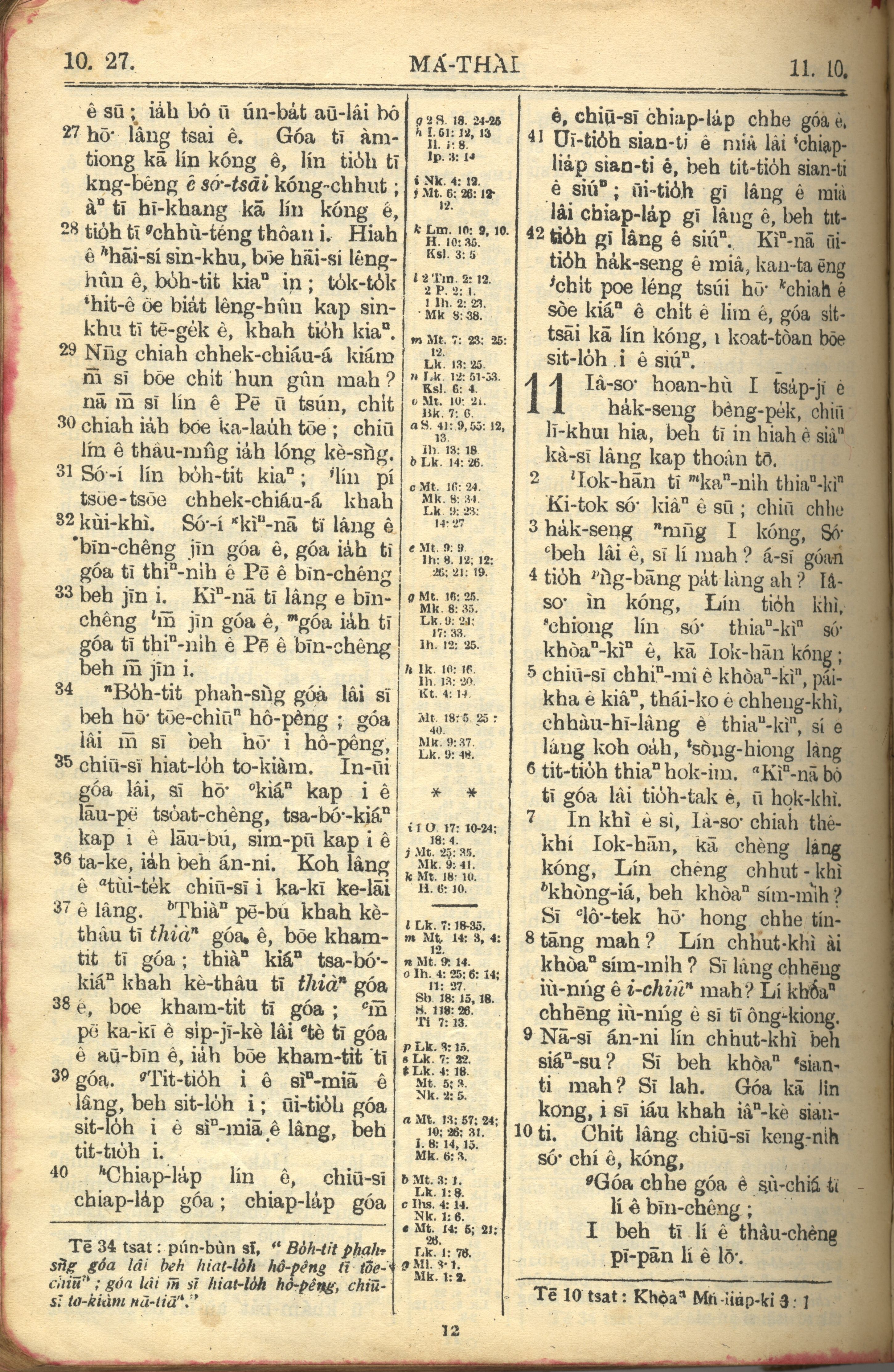 1957年巴克禮全羅台語聖經串珠版 馬太福音 10 章 27 節到 11 章 10 節