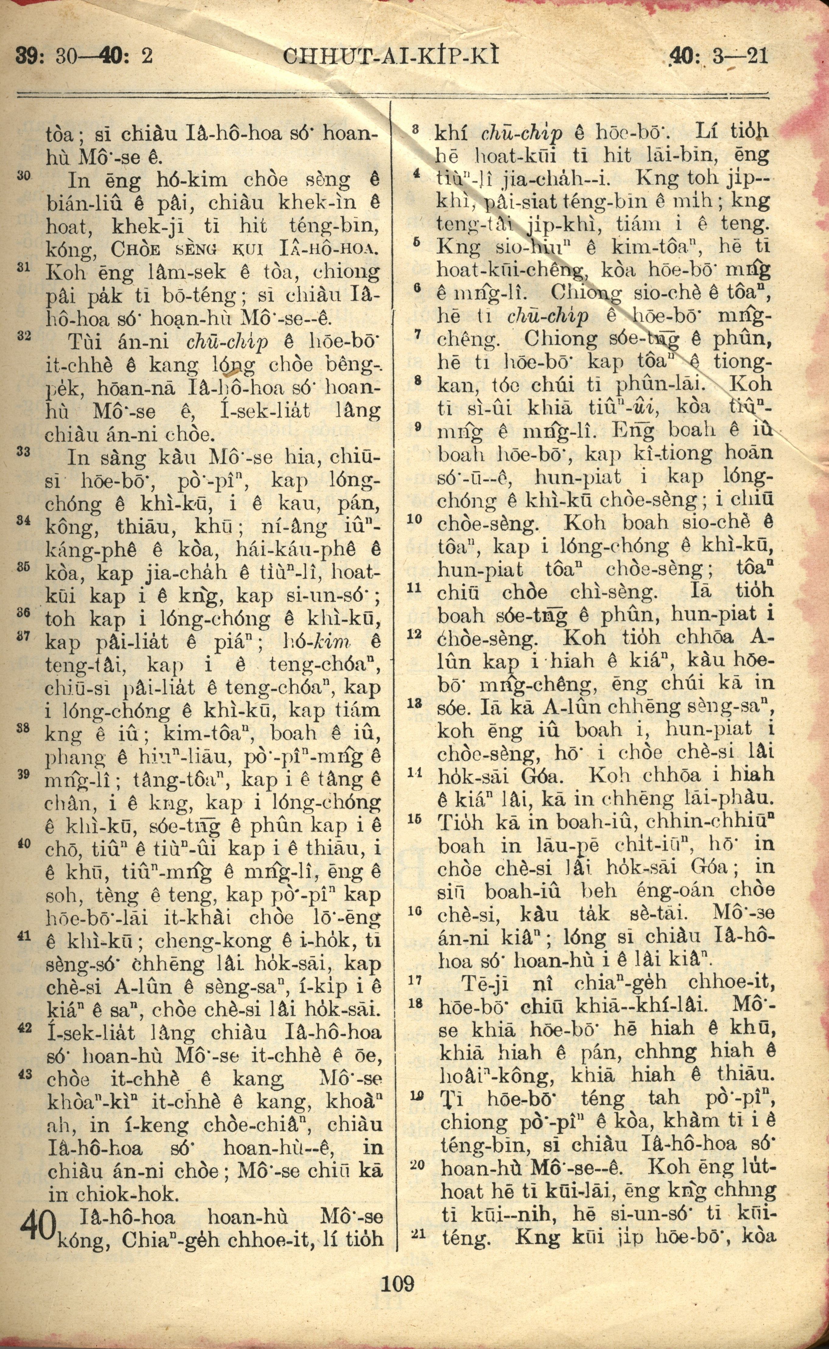 1957年巴克禮全羅台語聖經串珠版 出埃及記 39 章 30 節到 40 章 21 節
