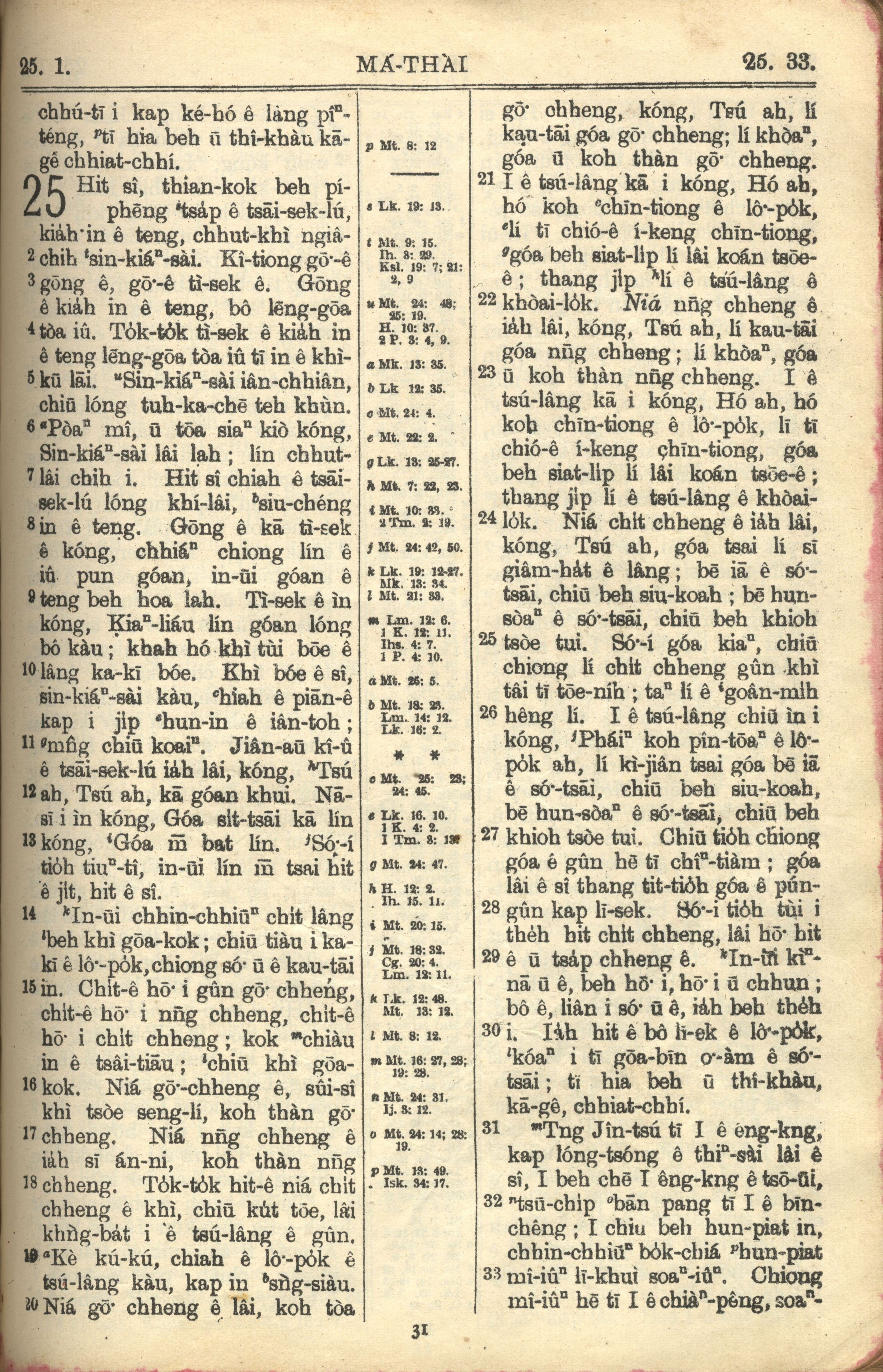 1957年巴克禮全羅台語聖經串珠版 馬太福音 25 章 1 節到 25 章 33 節