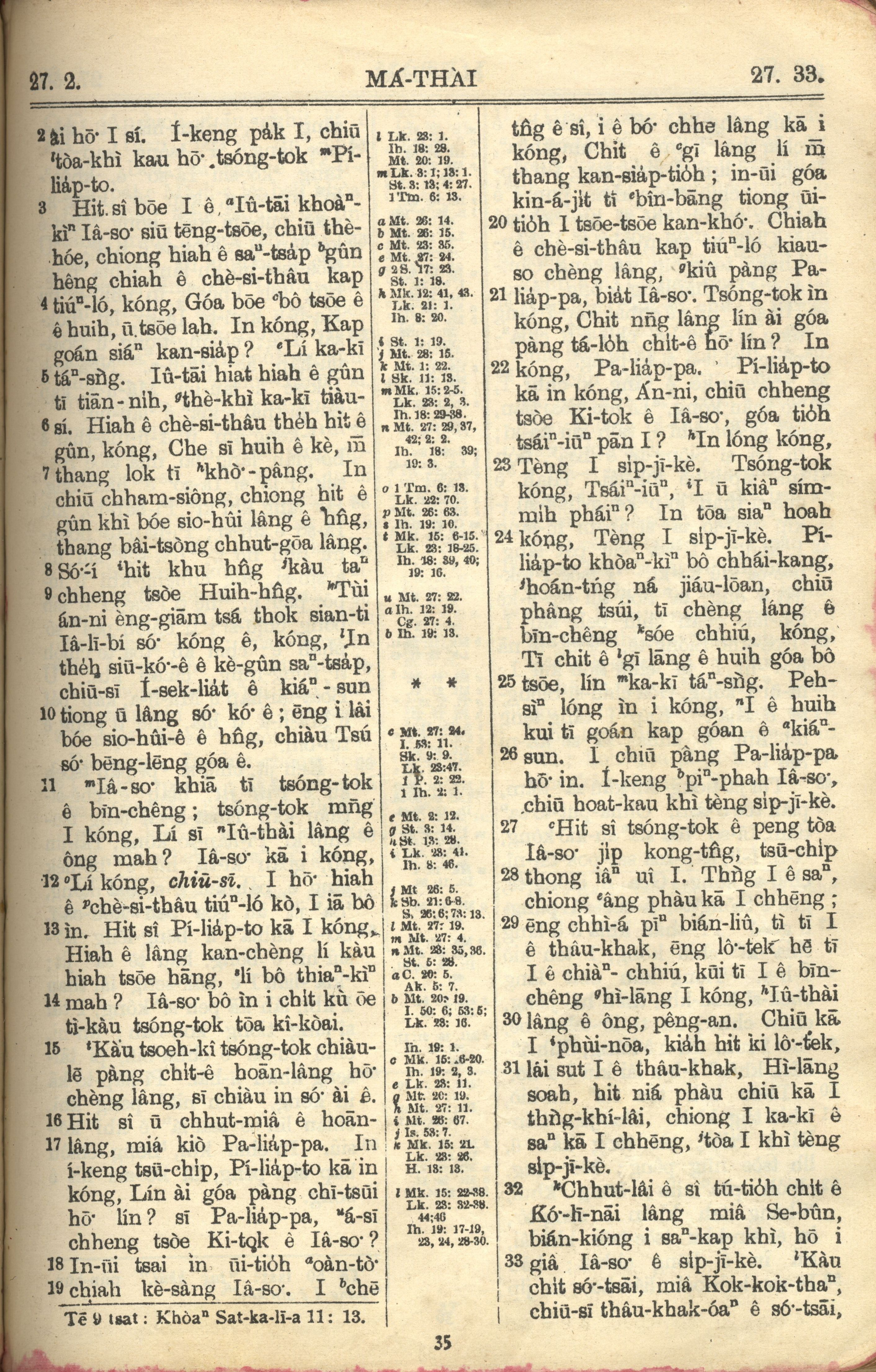 1957年巴克禮全羅台語聖經串珠版 馬太福音 27 章 2 節到 27 章 33 節
