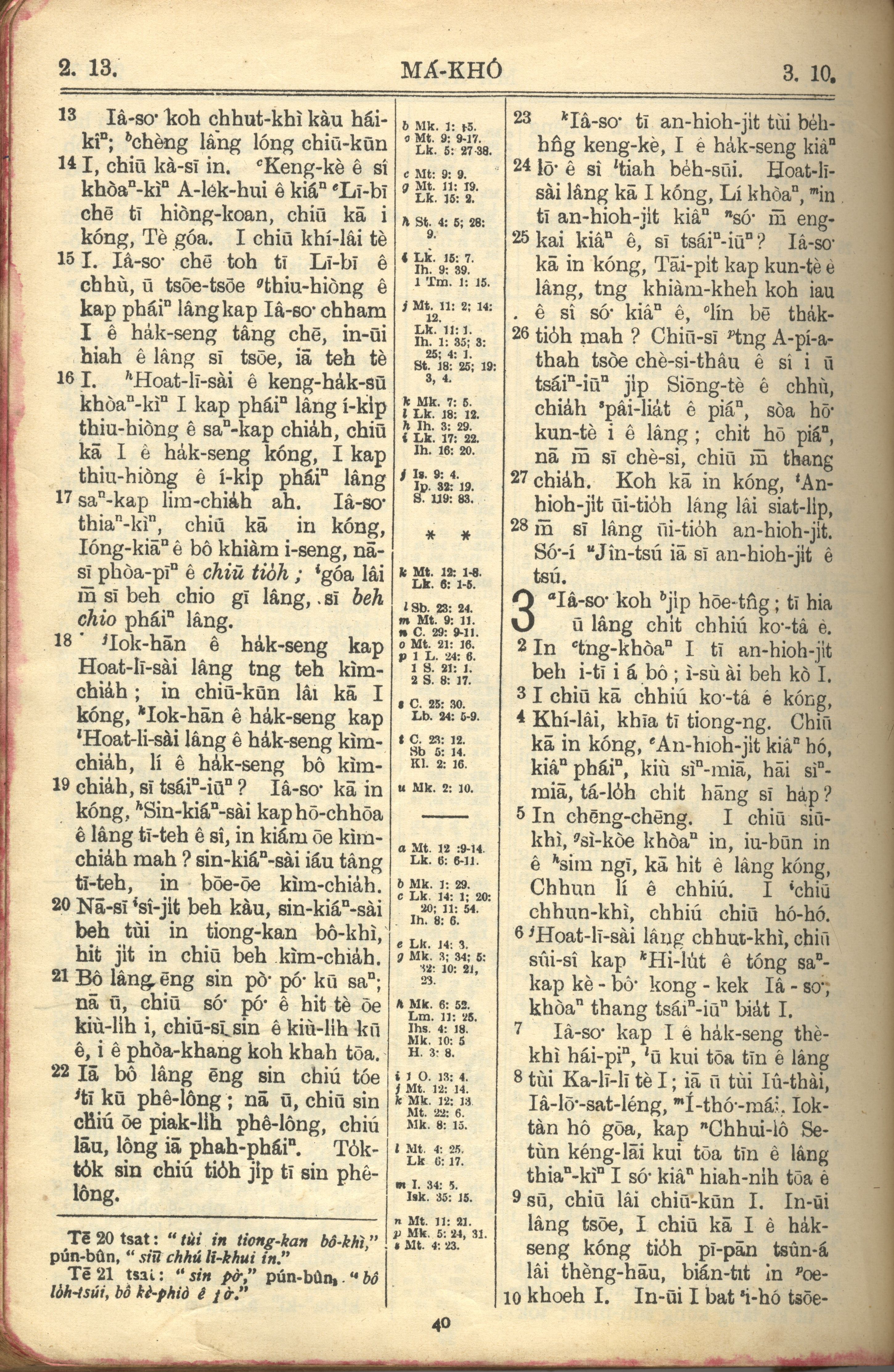 1957年巴克禮全羅台語聖經串珠版 馬可福音 2 章 13 節到 3 章 10 節