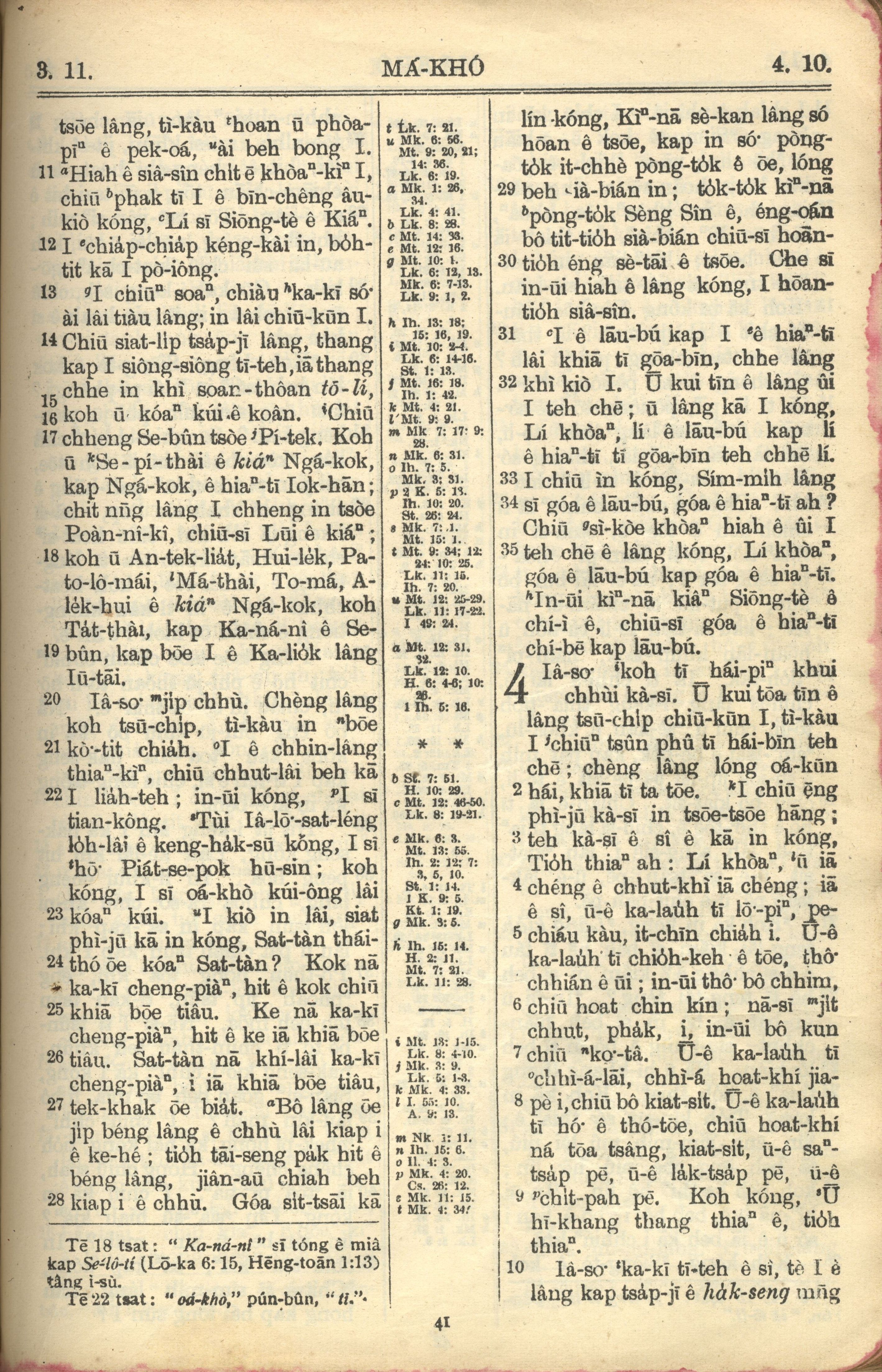 1957年巴克禮全羅台語聖經串珠版 馬可福音 3 章 11 節到 4 章 10 節