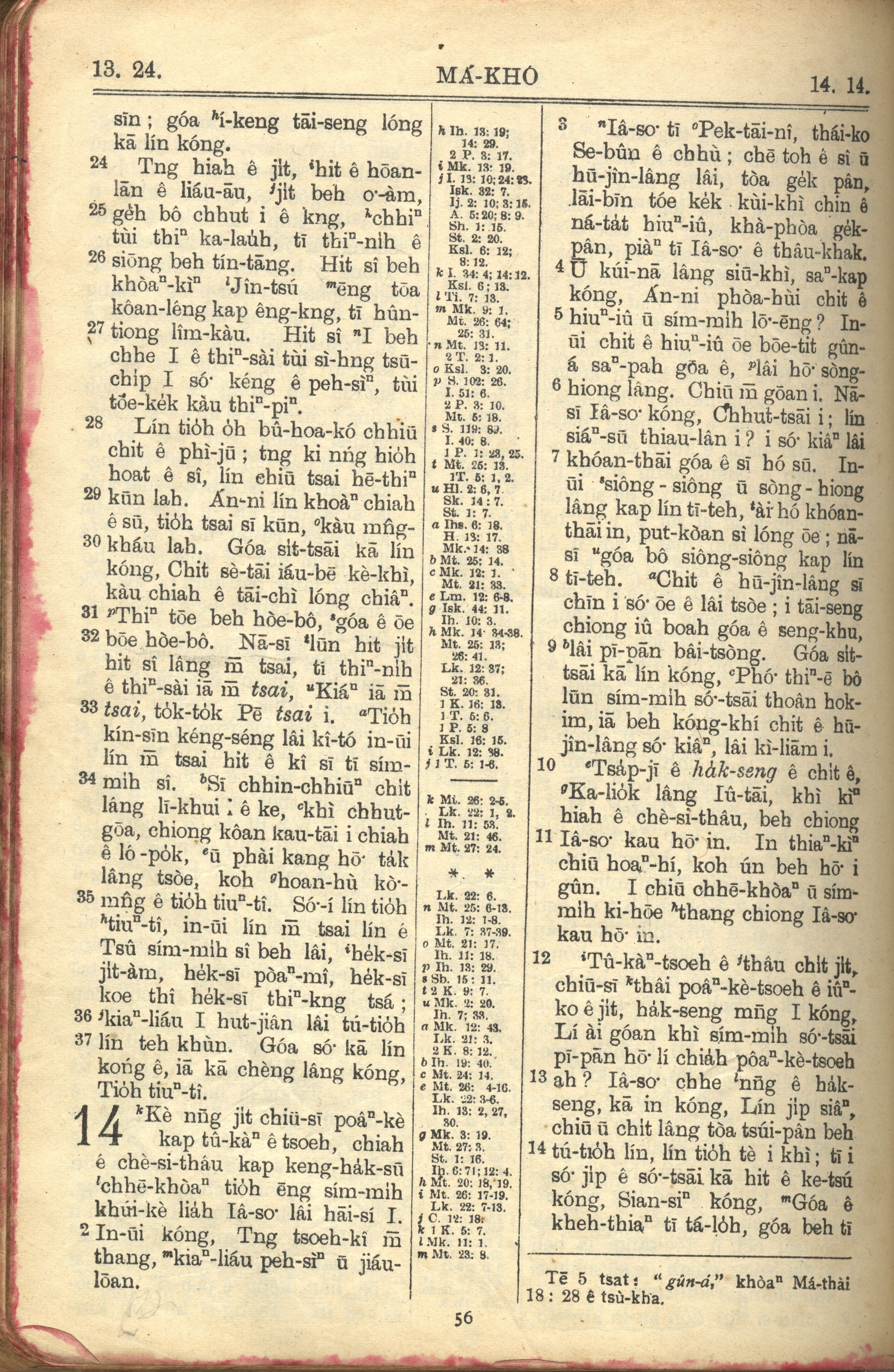 1957年巴克禮全羅台語聖經串珠版 馬可福音 13 章 24 節到 14 章 14 節