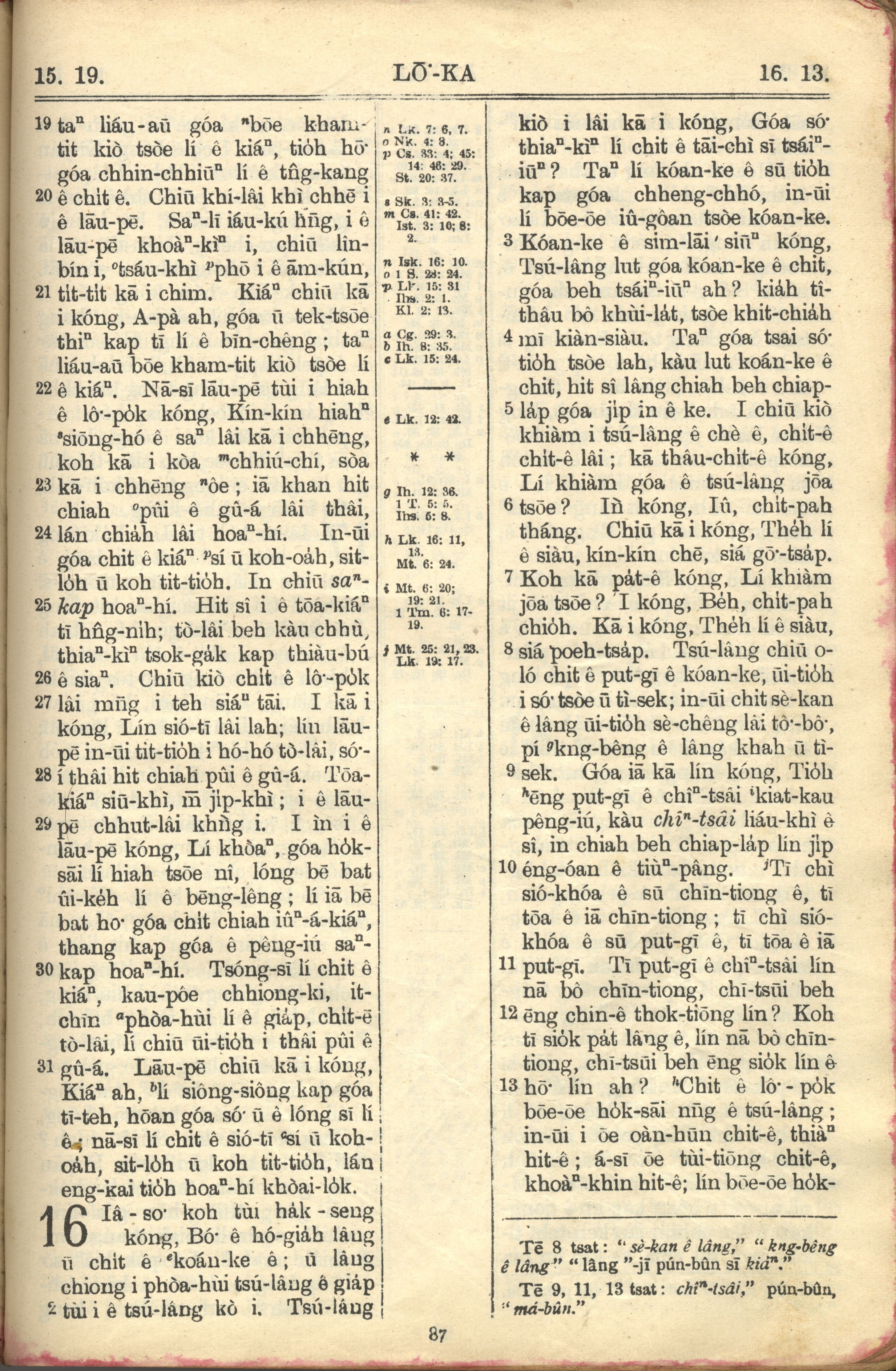 1957年巴克禮全羅台語聖經串珠版 路加福音 15 章 19 節到 16 章 13 節