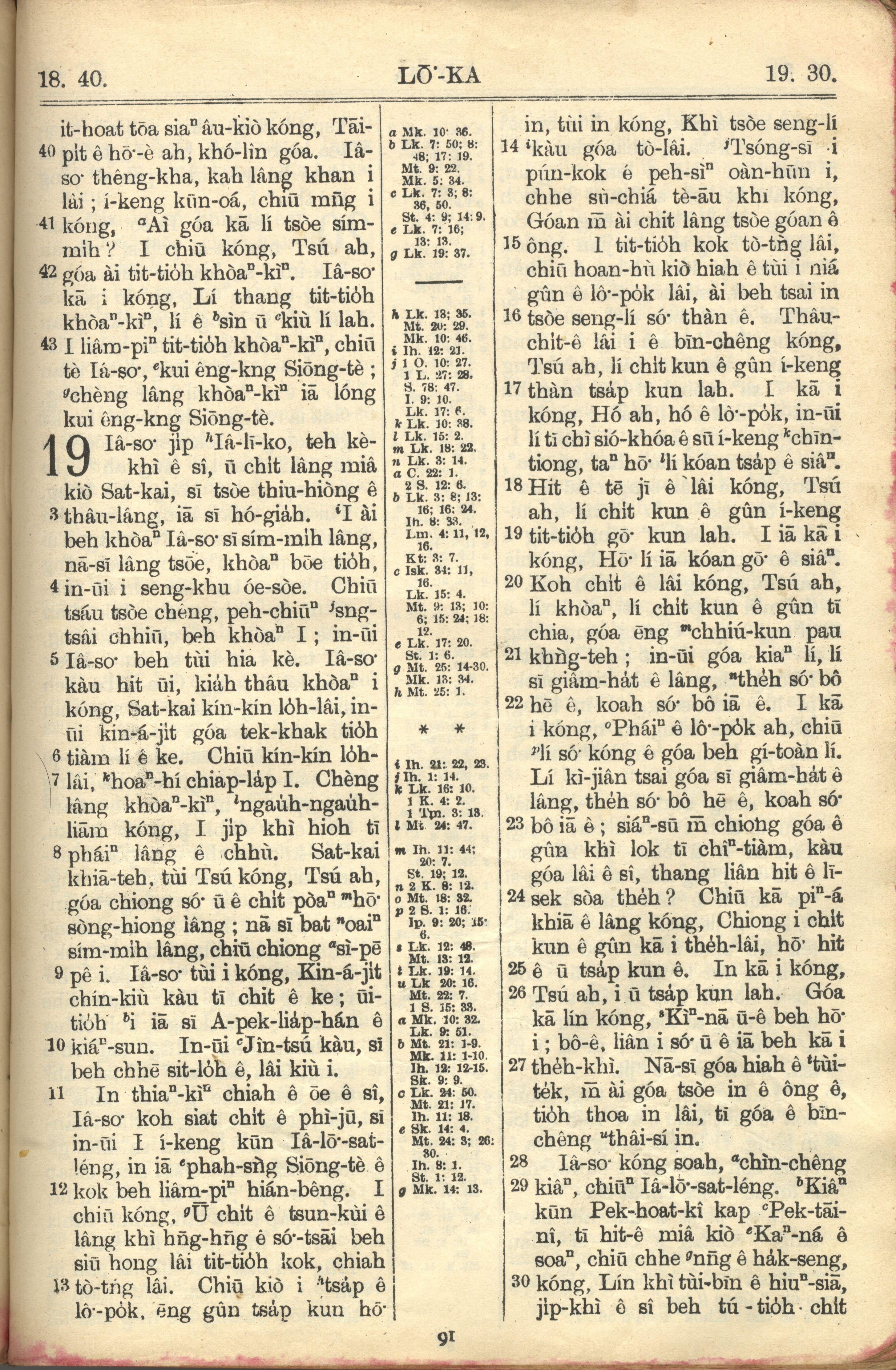 1957年巴克禮全羅台語聖經串珠版 路加福音 18 章 40 節到 19 章 30 節