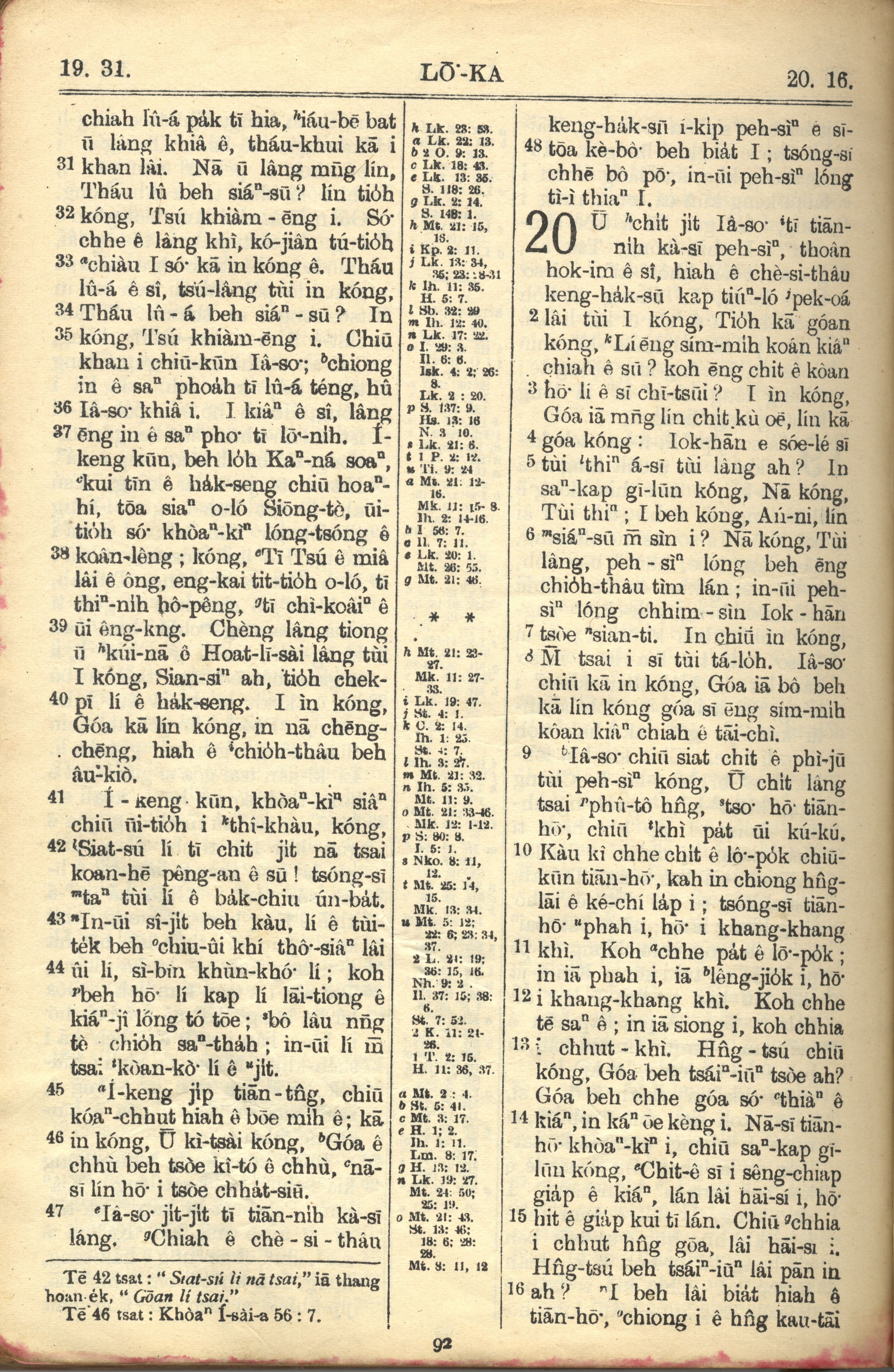 1957年巴克禮全羅台語聖經串珠版 路加福音 19 章 31 節到 20 章 16 節